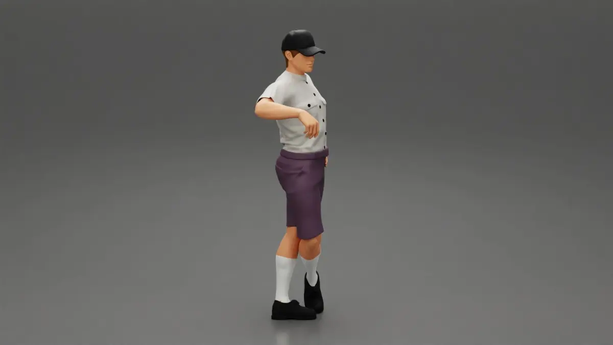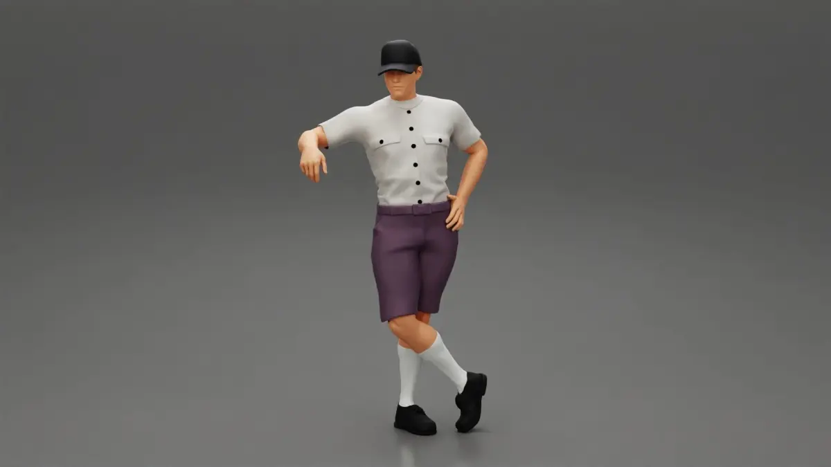 Home Catalog Delivery man waiting for client wearing short and cap 3D print model
