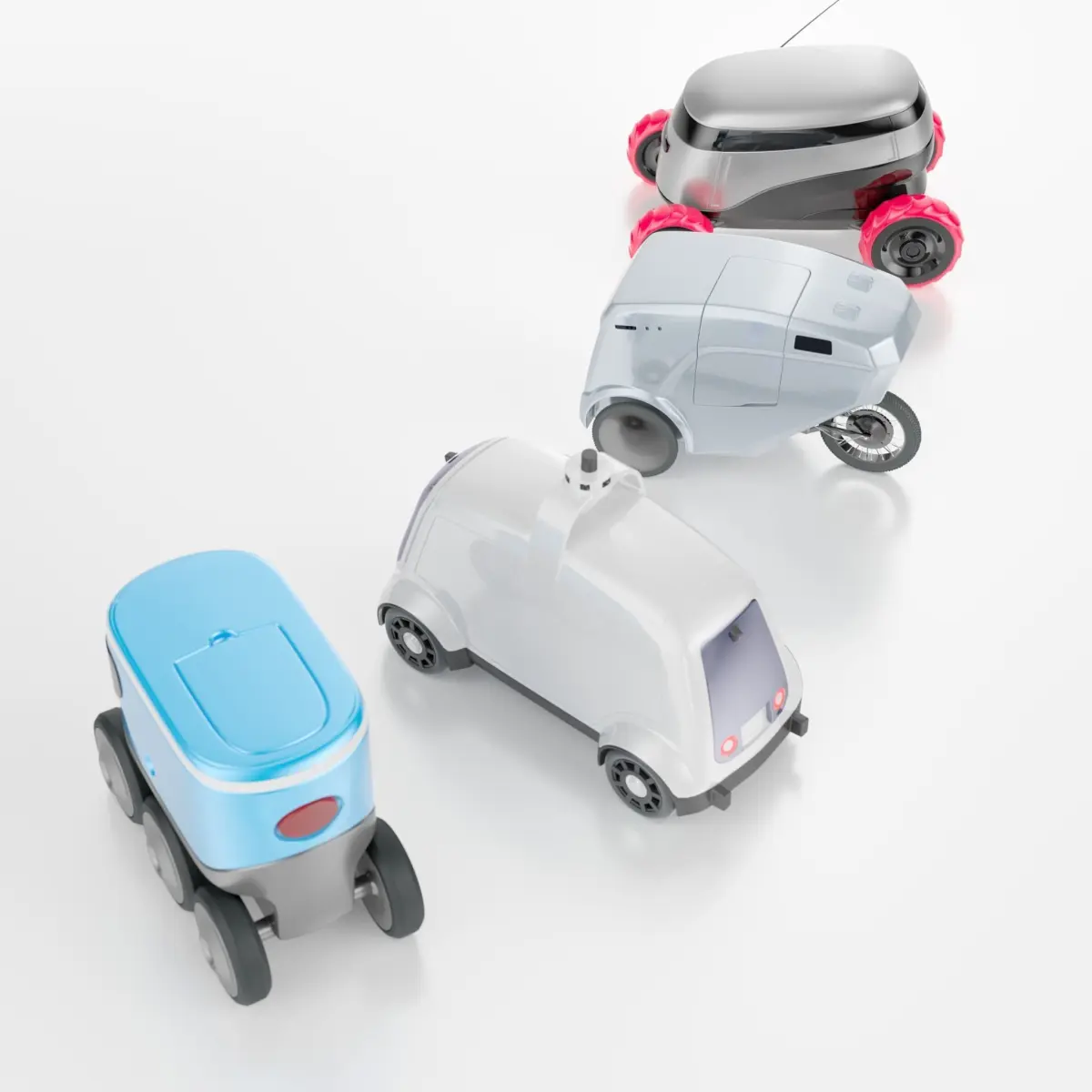 Autonomous delivery robots pack 4-in-1, subdivided and ready for render in vray.