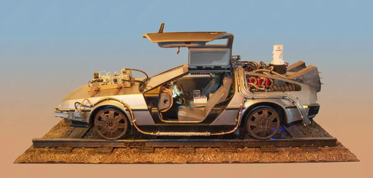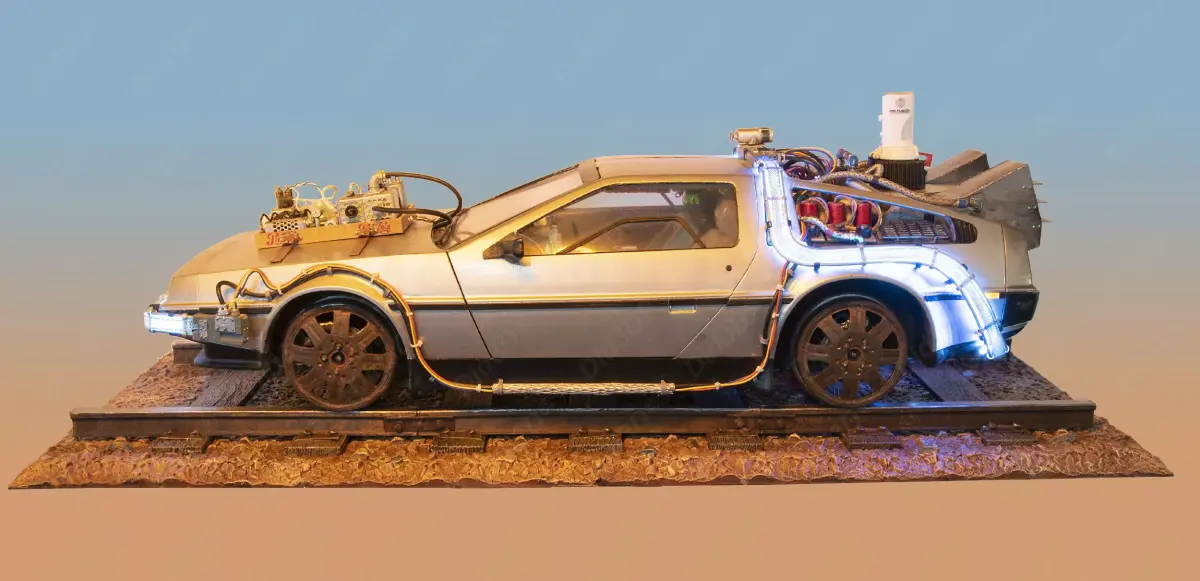 The model has been modelled as faithfully as possible to the film (part 3)(model based on the modified Delorean V2 (without the flight system)), with every detail reproduced with the utmost precision.Model on Rails or model with 1955 wheels included.It is complete with lighting effects and sounds from the film (FR/US), controlled by an Arduino board, and accompanied by a 54-page illustrated step-by-step assembly guide (French/English).Basic wire soldering skills are required.