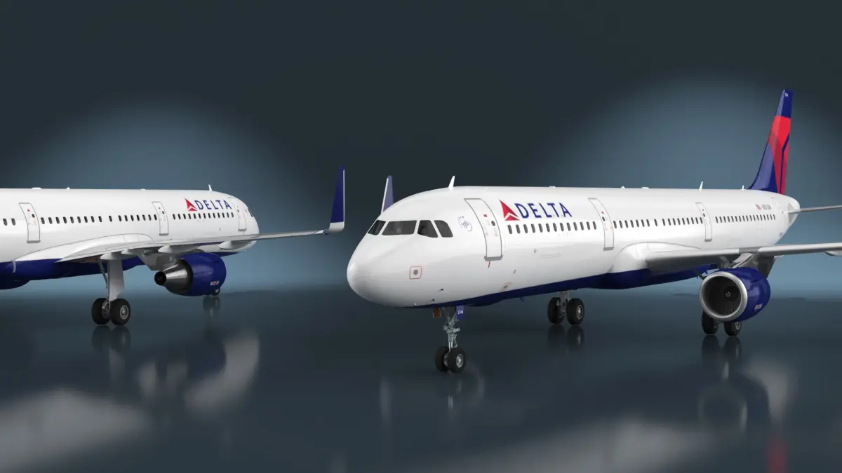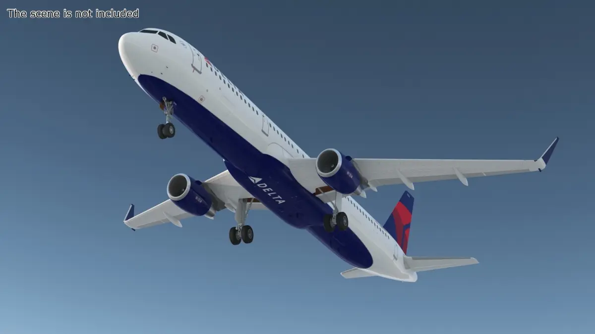 Delta Air Lines Airbus A321 with Cabin and Cockpit Rigged for Cinema 4D is a three-dimensional model of a commercial passenger airplane featuring the Delta Airlines livery.