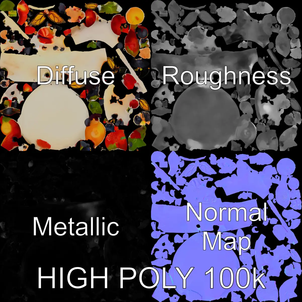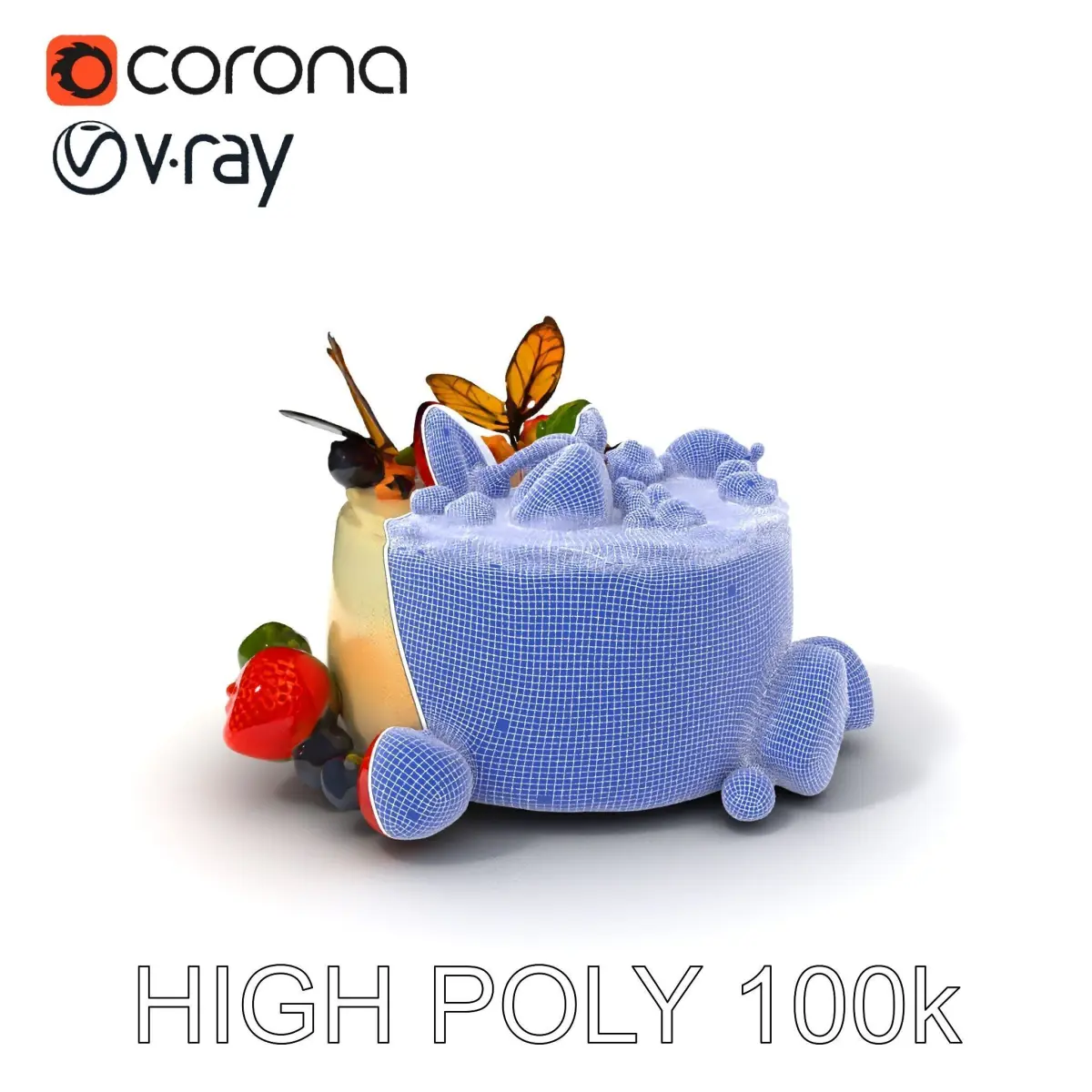The model pack features a beautifully detailed deluxe fruit cake with colorful decorative elements including strawberries, blueberries, and artistic chocolate butterflies. Available in three levels of detail, the model is suitable for mobile, environment rendering, and high-definition production. Ideal for use in bakery-themed projects, culinary presentations, or realistic animations. Textures are fully PBR with Diffuse, NormalMap, and metallic maps. Materials are unwrapped and non-overlapping. All textures are 4096*4096, ensuring high-quality renders across various platforms, including 3ds Max, Maya, Blender, Unity, and Unreal Engine.