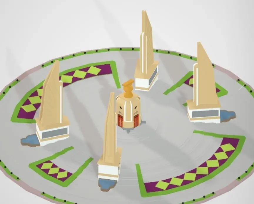 The 3D model of the Democracy Monument was created to represent one of Thailand’s most significant political and architectural landmarks, located in the heart of Bangkok. The modeling process began with collecting reference materials, including architectural drawings, aerial images, and on-site photographs, to ensure accuracy and proportion.