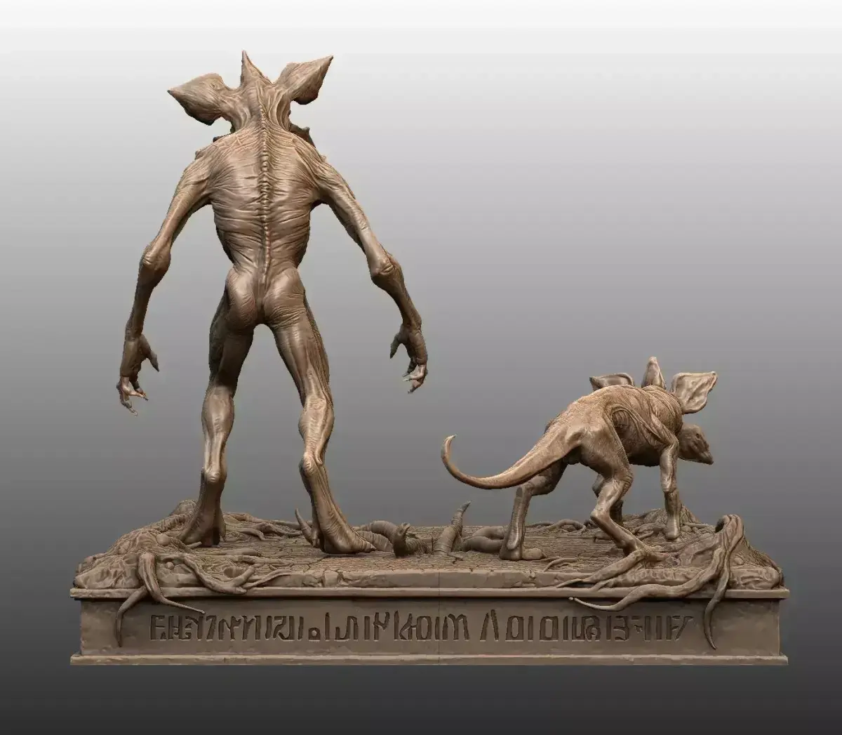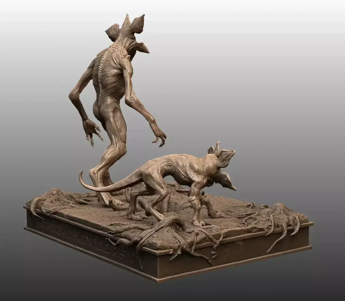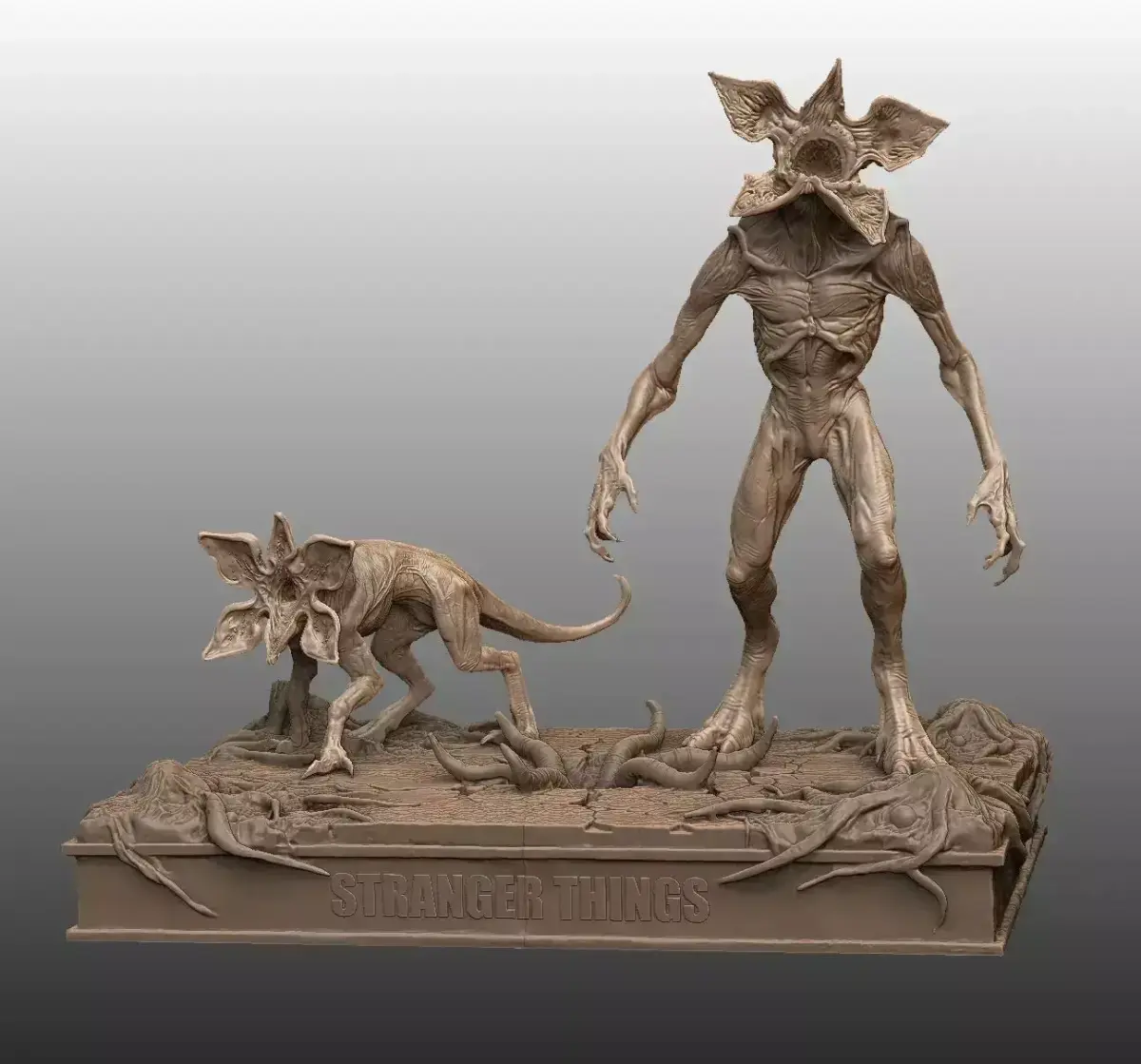 High-detail diorama featuring a Demogorgon and a Demodog, inspired by Stranger Things. The model includes a custom base that brings the Upside Down atmosphere to life, designed as a single display scene. Optimized for 3D printing, especially resin, with crisp details and strong composition. Perfect for collectors, horror fans, and display pieces.