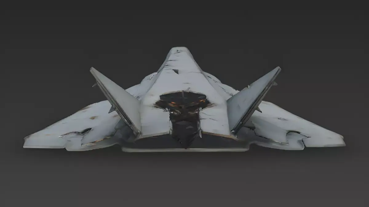 Optimized High-Fidelity GeometryThe entire demolished stealth aircraft hull is composed of efficient geometry designed for high-performance real-time rendering. Every element, from the jagged edges of the metal breaches and the exposed internal framework to the reinforced vertical stabilizers, is modeled as solid, opaque geometry to maintain a consistent realistic look without the need for high-overhead translucent shaders.