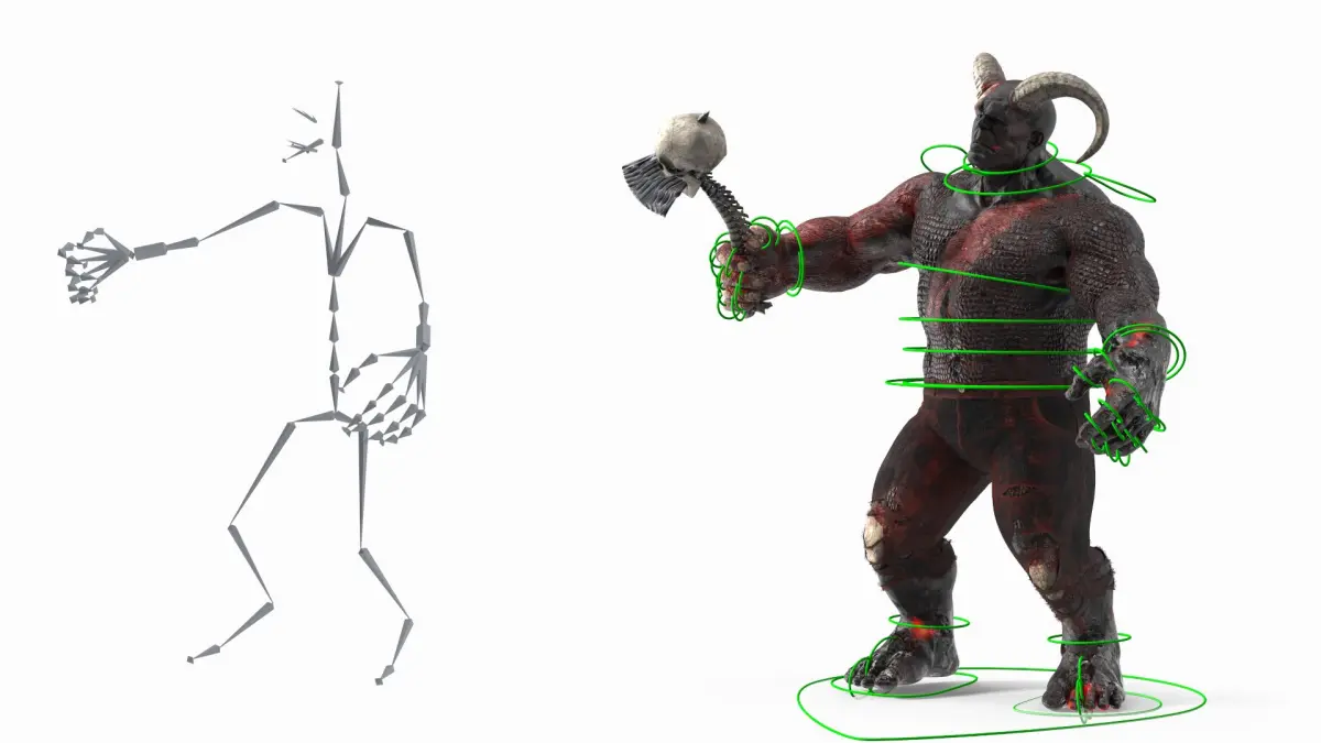 Demon Character with Hellish Hatchet Rigged is fully rigged and is ready to be animated. You can easily position it the way you need or animate it the way your project requires using helpers in 3D Studio Max. See the turntable to get an idea of how rigging works.