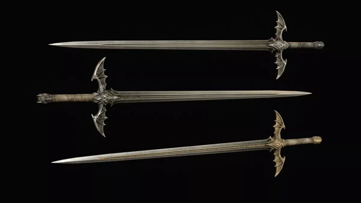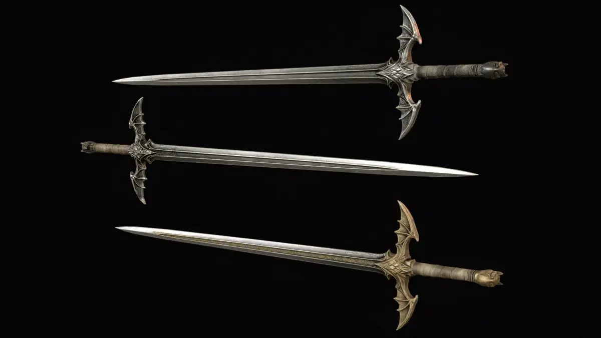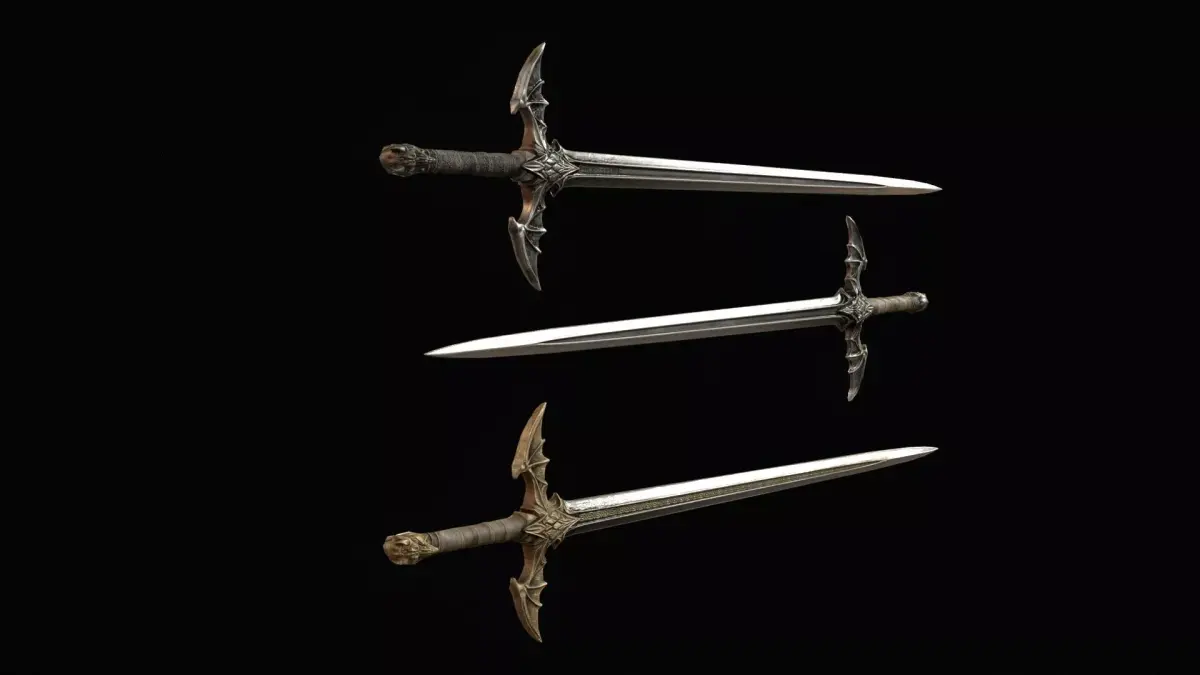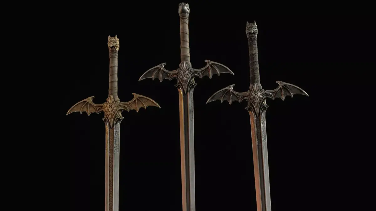 The design features dragon-inspired shapes and demonic details, giving the blade an aggressive and legendary presence. The model includes PBR textures and is prepared for easy integration into game engines. The grip is positioned at world zero for convenient placement and attachment, and the model is oriented along the Z axis. The asset includes 2K and 4K textures, making it suitable for optimized real-time use as well as more detailed cinematic scenes.