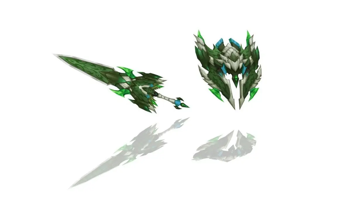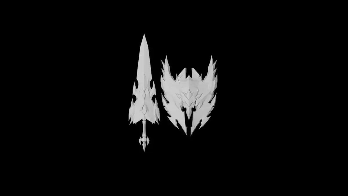 A set of a sword and a shield in a demon/beast style that comes with two variants.