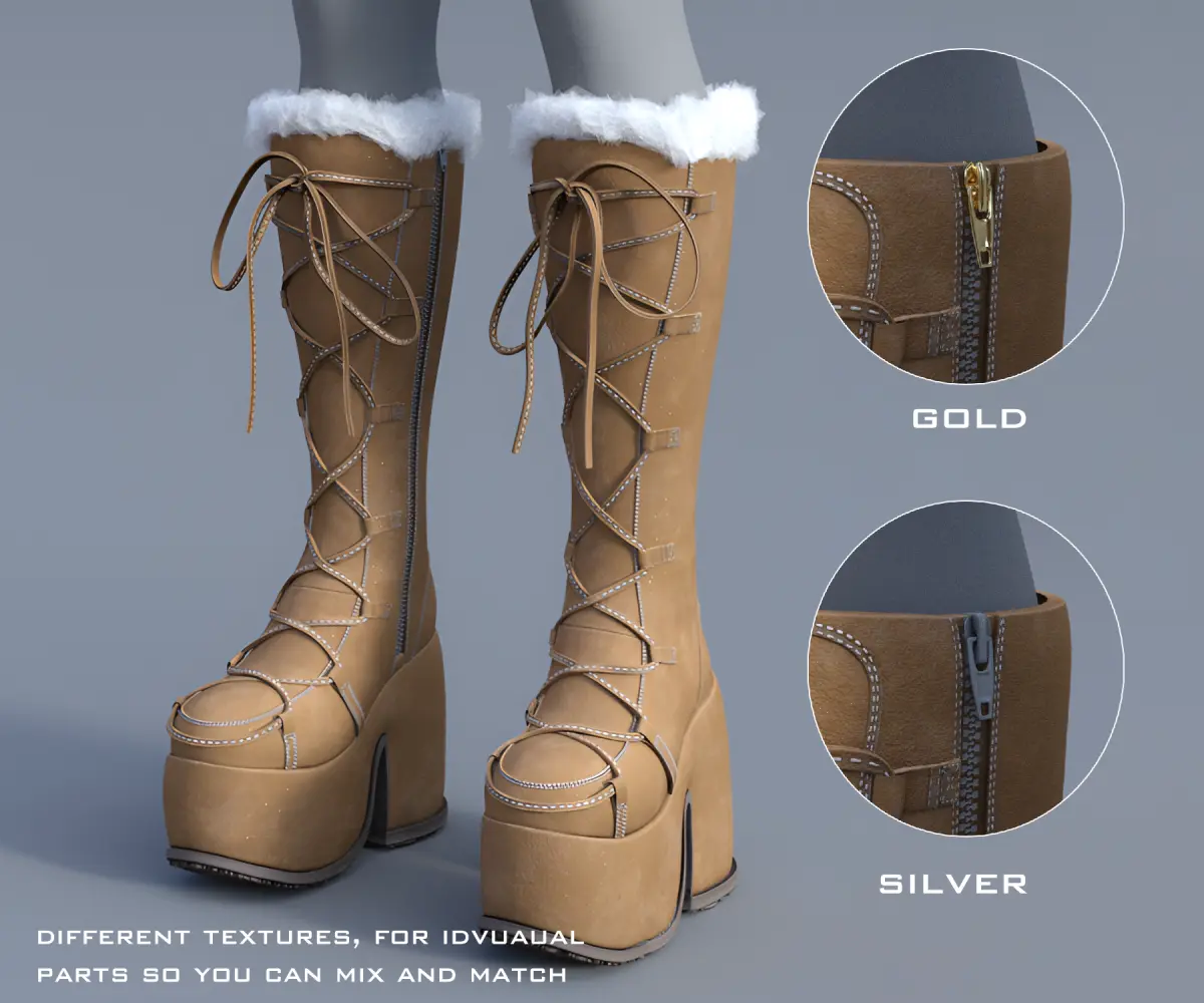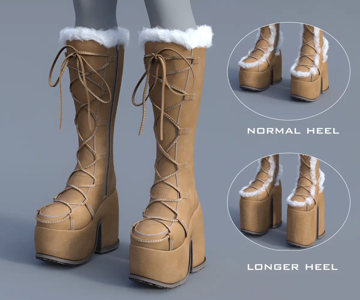 There's nothing better than showing style while keeping warm. Introducing the new fur boots for genesis 9 made for the cozy winter season, combining style with a touch of brutal femininity. These boots are designed for versatility, featuring: