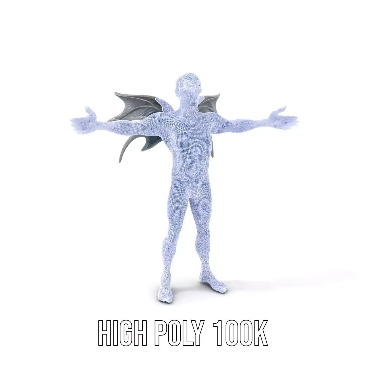 The Demonic Entity Dark model pack features an intricately detailed mythical creature with menacing red eyes and bat-like wings, perfect for fantasy and horror projects. Each model has 3 levels of detail: low-poly (1000 triangles for mobile), middle-poly (10,000 triangles for environment), and high-poly (100,000 triangles), which allows for the use of this model in production rendering (such as 3ds Max, Maya, Cinema4D, Blender, Vray/Corona/Cycles and all other), game engines (Unity and Unreal compatible), and interactive presentations, providing a choice of detail based on the LOD System principle. Ideal for video games, visual effects in film, or spooky animations. The model's textures are PBR, Diffuse, NormalMap, and reflection/roughness/metallic, which are suitable for any modern rendering engine. All models accurately unwrapped and have no overlapping UV. All textures are 4096*4096 in size. If you like this model, please leave a comment or like.
