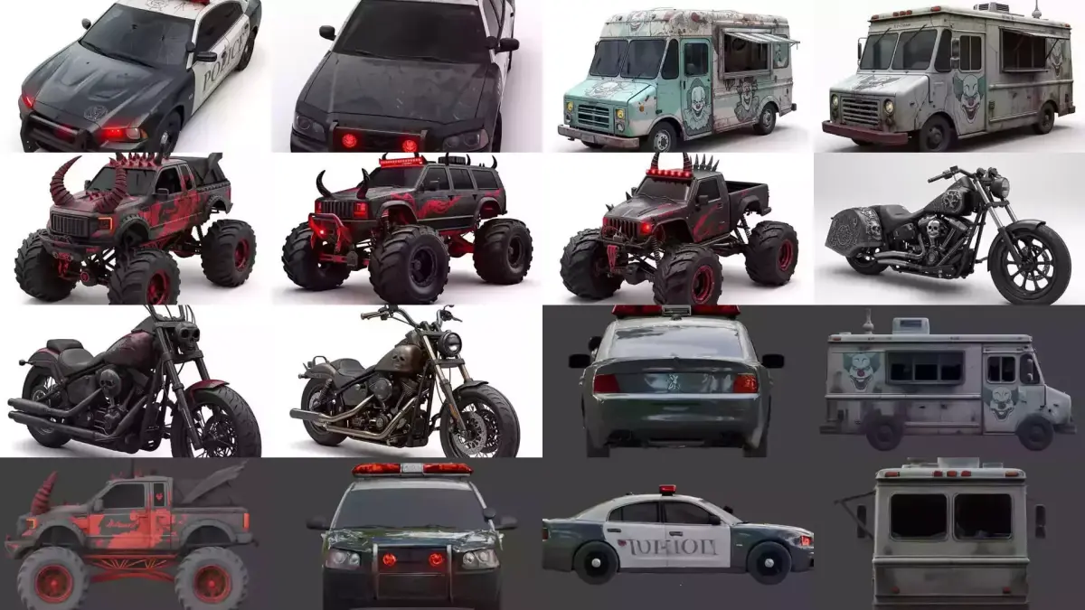 DescriptionA dark and aggressive collection of demonic, gothic, and possessed vehicles designed for horror, occult, and post-apocalyptic themes. This collection features cursed muscle cars, demon-infested motorcycles, haunted hearses, gothic coffin vehicles, possessed police interceptors, and monstrous off-road machines.Perfect for horror games, dark fantasy worlds, post-apocalyptic scenes, cinematic renders, Halloween content, and stylized or realistic environments.All models share a strong visual identity with corrupted metal, spikes, occult symbols, rusted details, and sinister silhouettes.