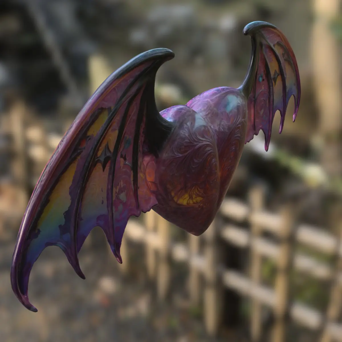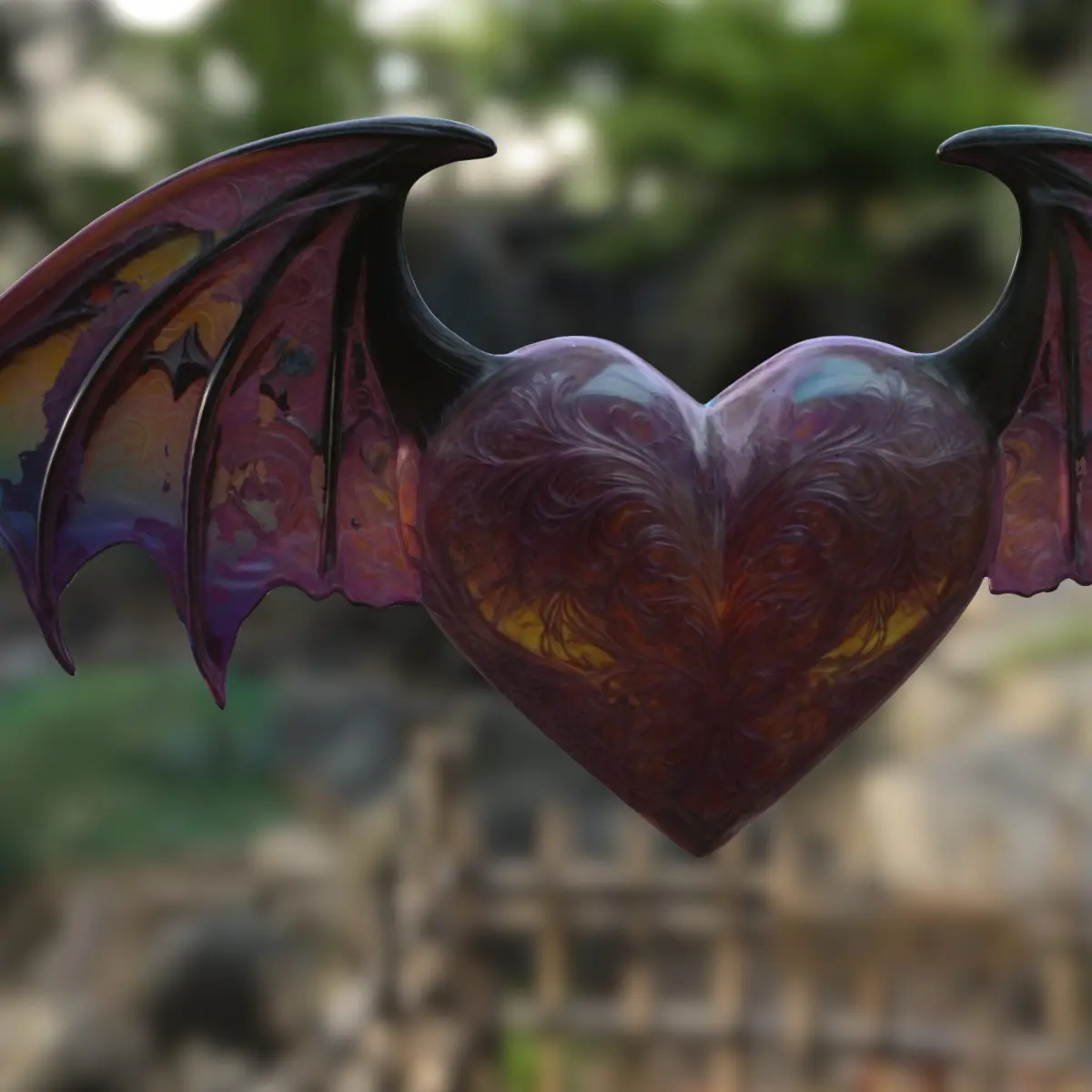 This 3D model presents a stylized demonic heart adorned with intricate engravings and paired with vibrant bat-like wings. Ideal for use as a magical relic, power-up, boss reward, or thematic decoration in fantasy, gothic, or dark romance games such as Castlevania, Diablo, Genshin Impact, Bayonetta, or League of Legends. With high detail and a mystical glow aesthetic, this asset is optimized for game engines and is fully suitable for 3D printing as a display piece or collectible.File Formats: OBJ, FBX, STL, DAE, PLY, GLBCompatible Uses: Game asset, collectible item, magical prop, 3D printing