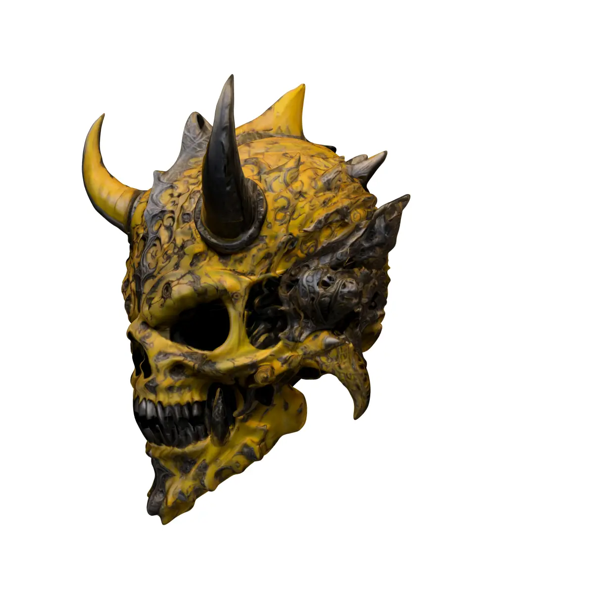 This premium 3D model represents a demonic horned skull helmet, perfect for use in games, cinematic assets, or virtual environments like Unreal Engine or Unity. This highly detailed model is provided in popular formats: DAE, OBJ, STL, USD, PLY, GLB,and FBX. The asset features 2048x2048 PBR textures for photorealistic rendering. Ideal for VR/AR, games, and 3D printing.