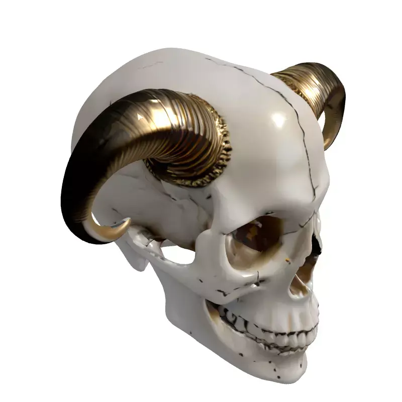 This highly detailed 3D model presents a formidable human skull adorned with meticulously crafted golden horns, evoking a powerful fantasy or demonic aesthetic. The skull features realistic anatomical details, including prominent sutures and bone textures, while the horns boast a polished, metallic finish with intricate ribbed detailing at their bases. This versatile asset is ideal for a wide range of creative projects, including immersive game development, where it can serve as a compelling prop, environmental decoration, or even a collectible item in fantasy, horror, or RPG genres. It is equally suitable for high-quality architectural visualization scenes that demand a touch of gothic or dark fantasy, as well as for stunning digital art and cinematic renders. The model is prepared for various applications, including augmented reality (AR) and virtual reality (VR) experiences, and is also suitable for 3D printing, allowing for the creation of unique physical decorations or props. With clean topology and precise UV unwrapping, this model ensures ease of integration into any pipeline. It comes with PBR textures, providing realistic material representation across different rendering engines. Supported file formats include GLB, OBJ, STL, ABC, DAE, FBX, USD, and PLY, ensuring broad compatibility and flexibility for your creative workflow.