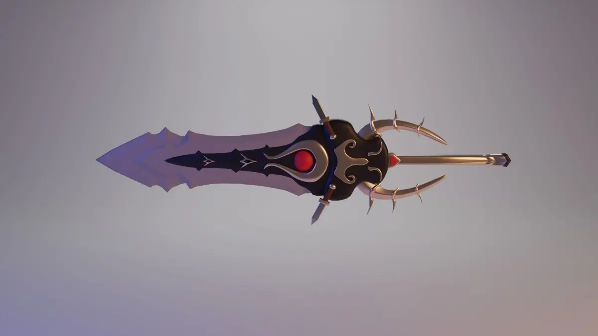 Fantasy Demons Slayer Sword. With golden and demonic polished gems inserts. Also there are two additional silver daggers. PBR textures. Ready for game engine.