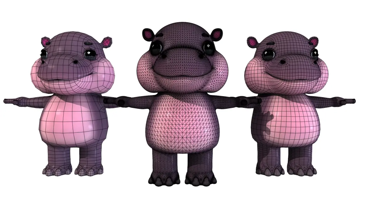 Baby hippo.LWO,.LWS,.OBJ,.FBX Morph Ahh, Eye Blink , close.Lightwave3DV.2015 Scenes Topse_Rig,Walk