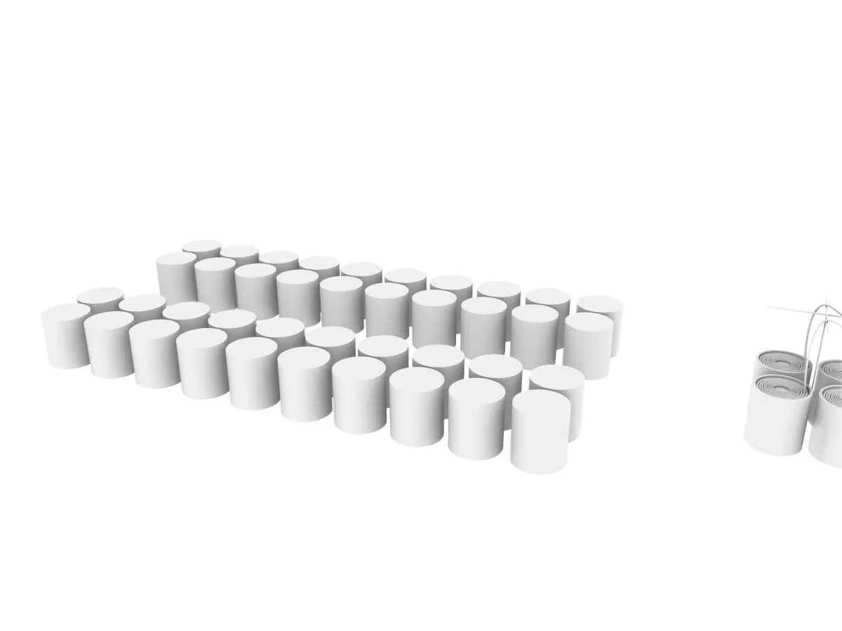 Machines that are a part of denim manufacturing. Up to scale model with approximate representation of real machines