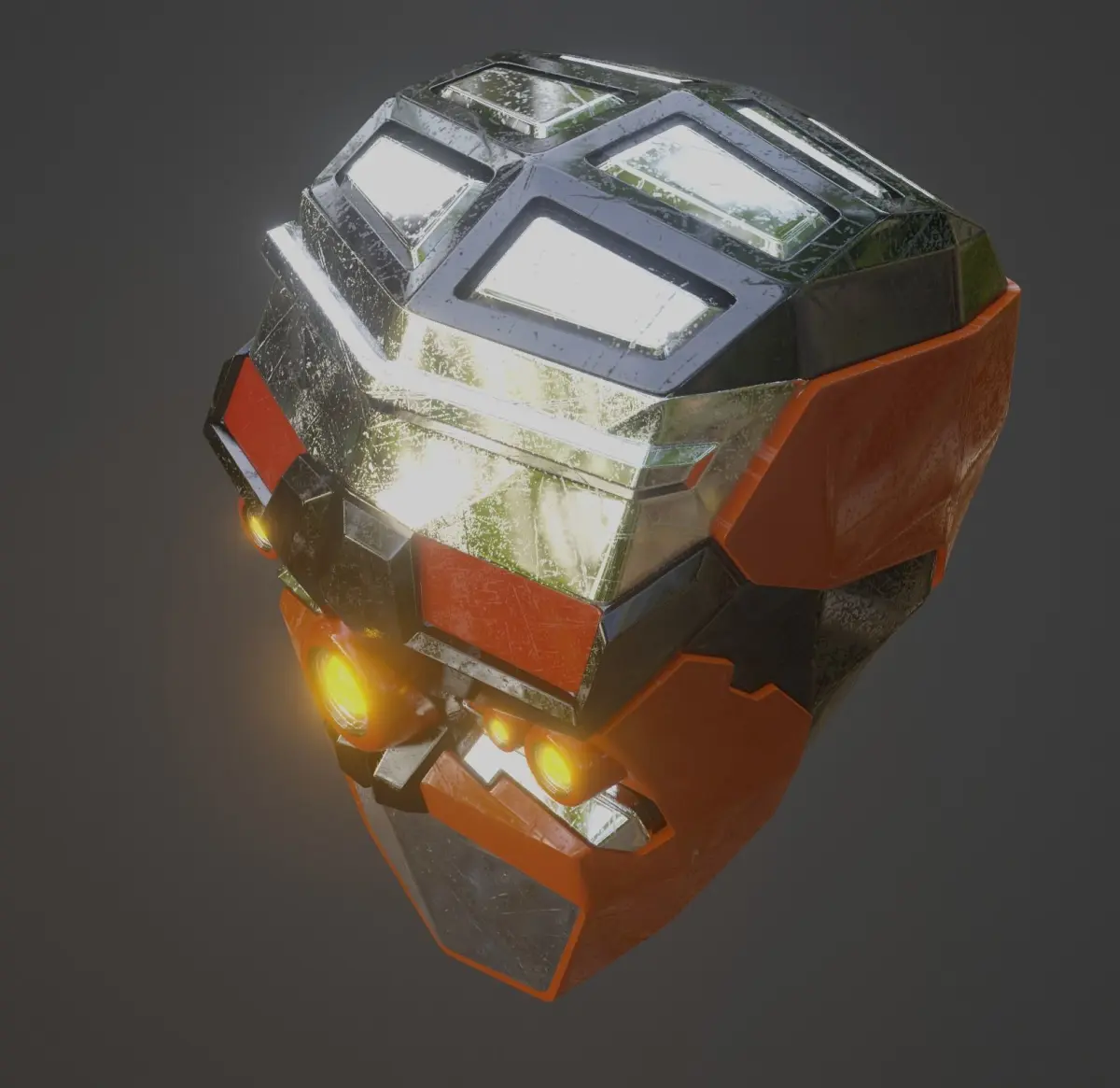 Scratched Robot Head low-poly game ready.Verts: 1,458,548.Faces: 1,458,635.