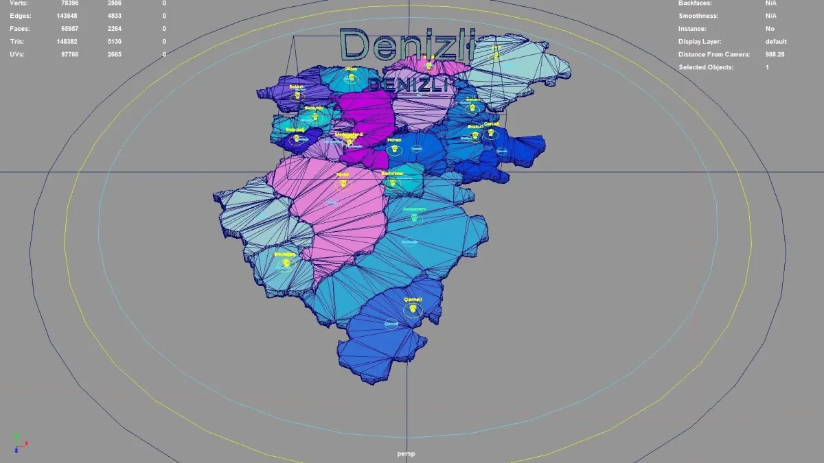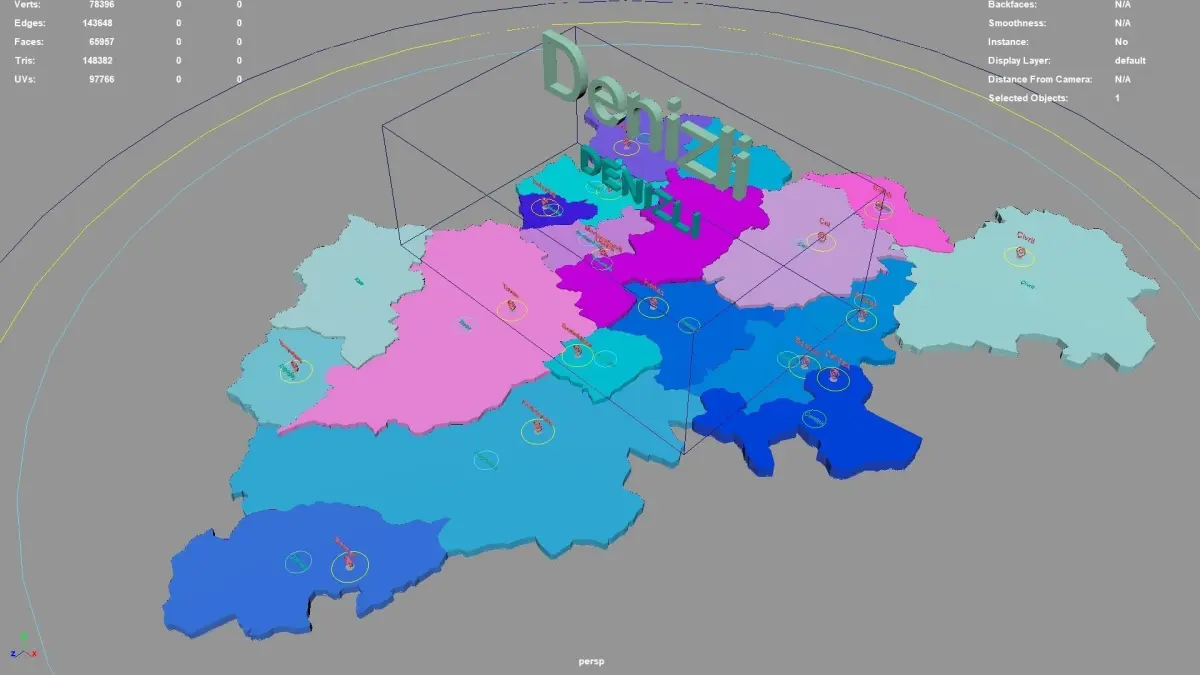 Denizli regions : The model is divided according to the administrative region of Denizli. Each region is clearly separated so you can easily isolate it or change the colors. Names are also editable and separate.