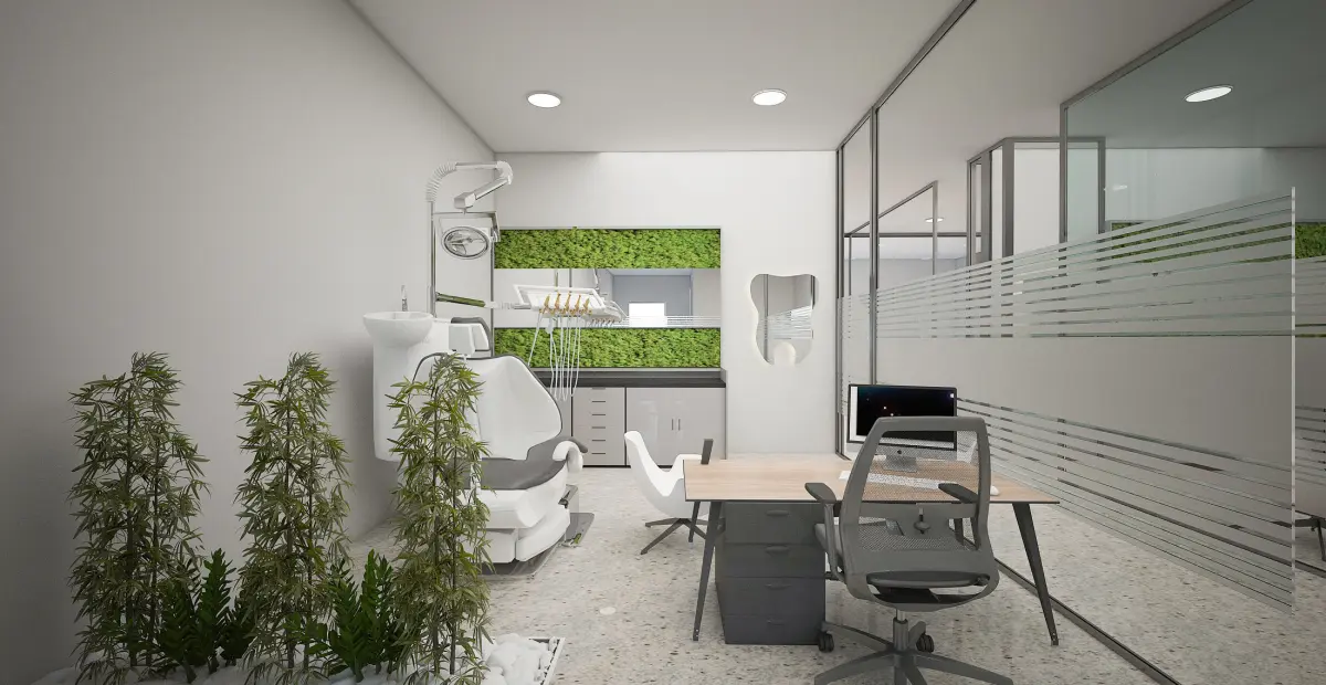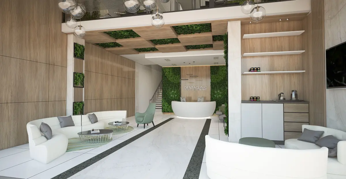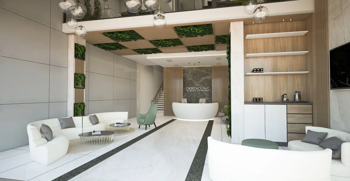 Two-story dental clinic. The ground floor consists of a reception area, while the upper floor houses four examination rooms. Lighting, camera, and rendering settings have been adjusted. Feel free to contact us for different formats.