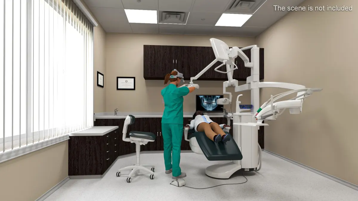 Dental Office Interior is a three-dimensional model of a modern dental clinic room, showcasing a comprehensive dental treatment area complete with advanced equipment and furnishings.