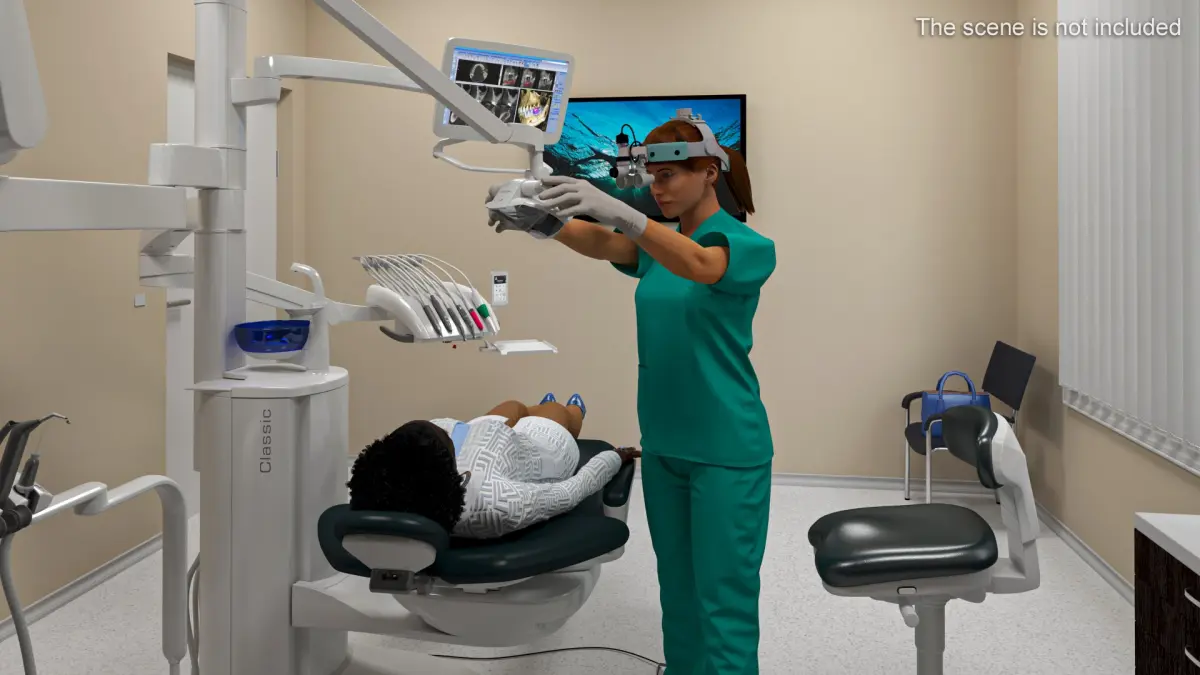 Dental Office Interior is a three-dimensional model of a modern dental clinic room, showcasing a comprehensive dental treatment area complete with advanced equipment and furnishings.