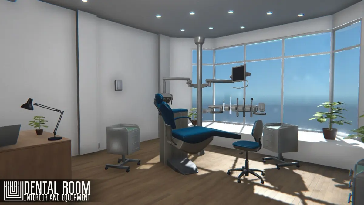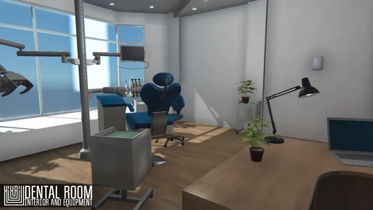 Mixaill studio presents a good solution for your games, VR projects and simulators. dental_office is a cabinet with medical equipment, furniture and interior items that will help you save time on implementing your ideas. Pack includes a large set of necessary models: roomwindowdoordentist chairdoctor's chairtools with standStand with lamp and monitornightstandnapkinindoor planttablephonelaptoplamps