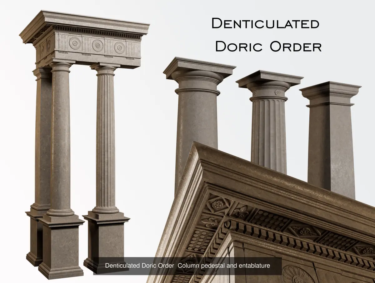 Doric Denticulated column with pedestal and entablature Doric Order on Vignola. *+ fluting Column *