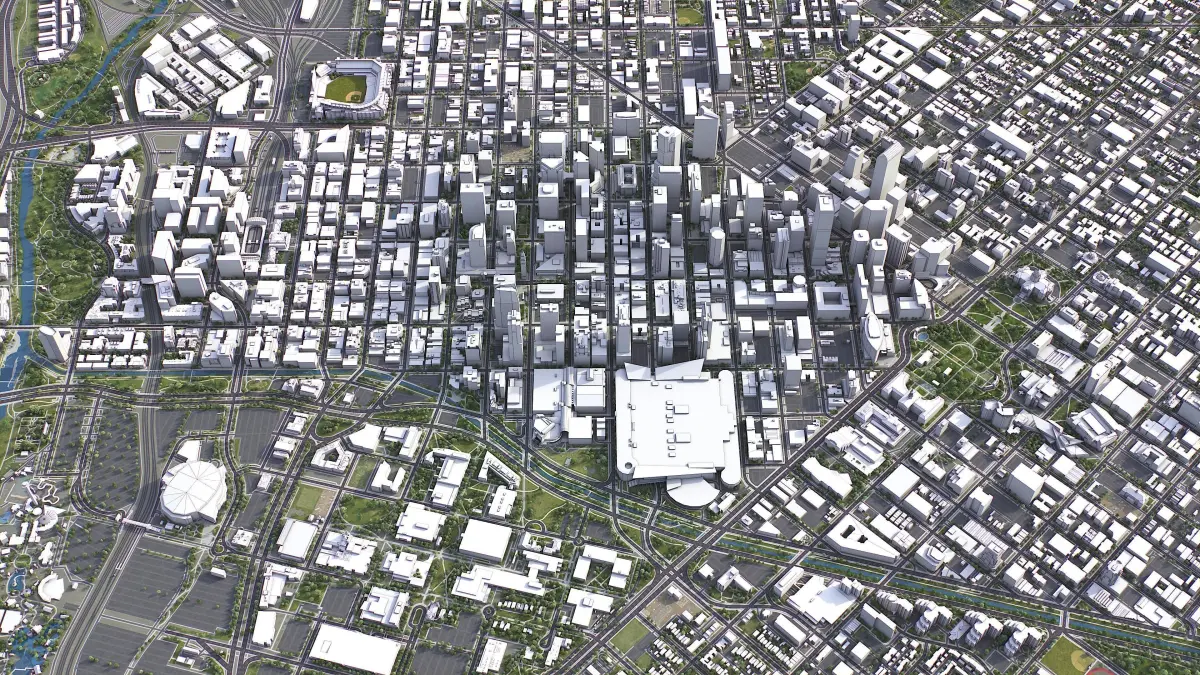 - Full city extents up to 100 x 100 km — or crop to an area of interest for better format compability and scene performance