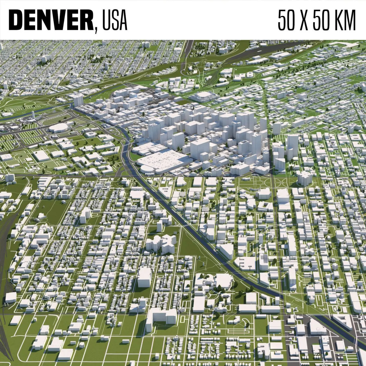 A DETAILED 3D MODEL CITY MAP OF DENVER, USA: