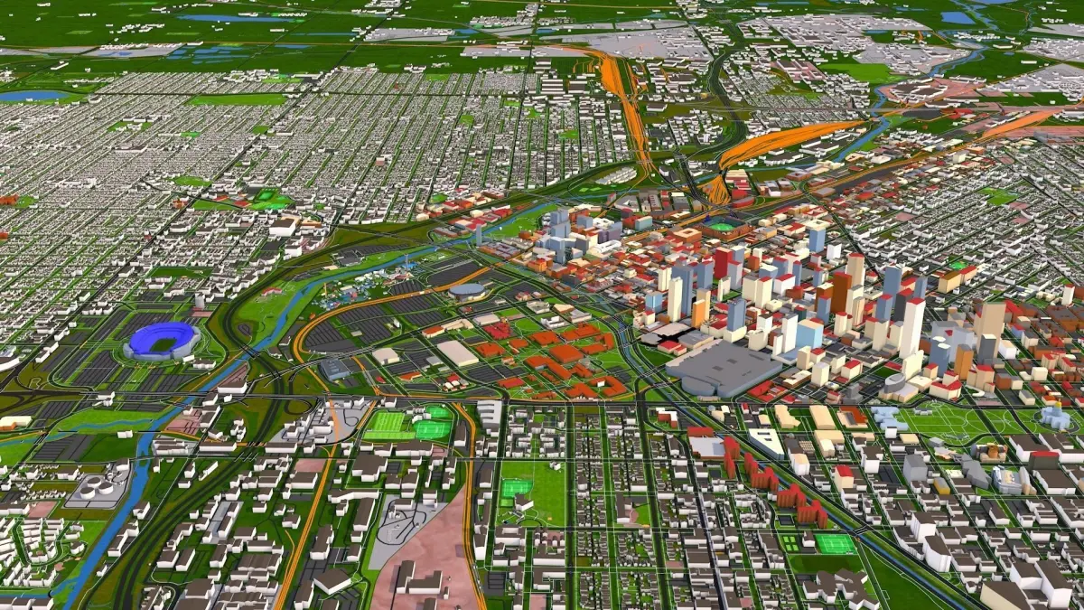 If you are using any polygon format (other than c4d file) you may want to use original curve data for roads, rail, river etc. Just merge any of the supported 2d format (alembic, dxf or c4d) on top of the polygon file. You can add traffic details, power lines, aerial ways, trees using all those extra details.