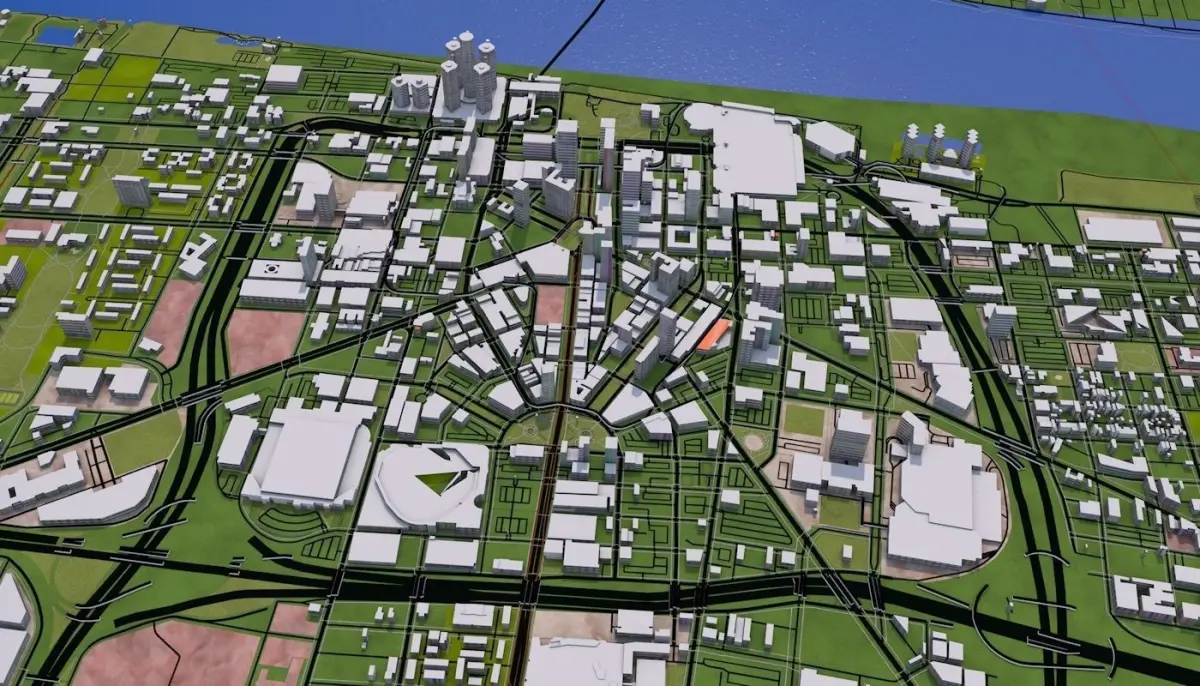 3D representation of Denver city USA using 2019 map data. Roads, railway, land, water, buildings are made using real world data. Buildings are accurately placed and resembles the real world object up to some extend. Please note that random buildings (varying height) are added to those area where real world data is not available.