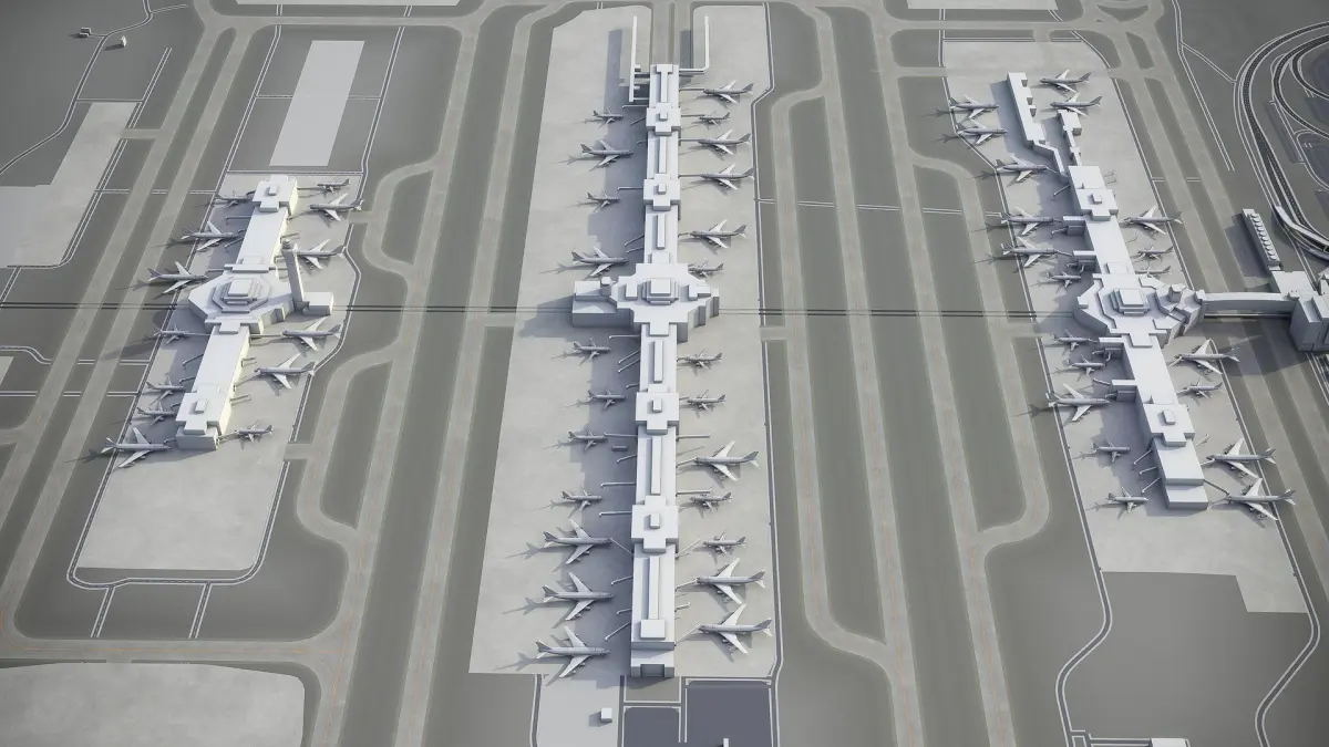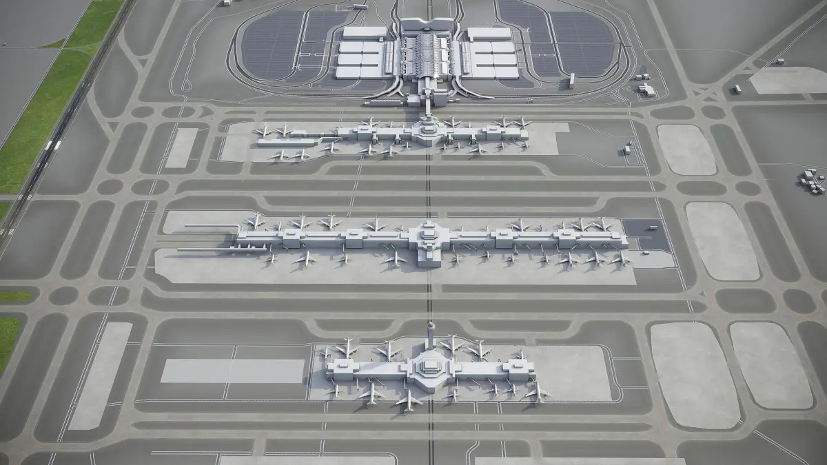 - This airport model is georeferenced, exact and accurate to real-world scale
