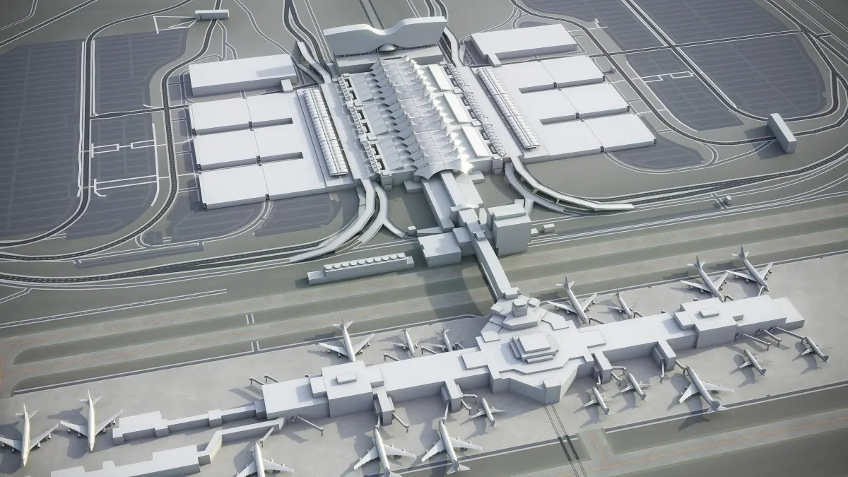 This is exact and accurate to scale 3D model of Denver International Airport - DEN and its surrounding area based on GIS data (December 2019)