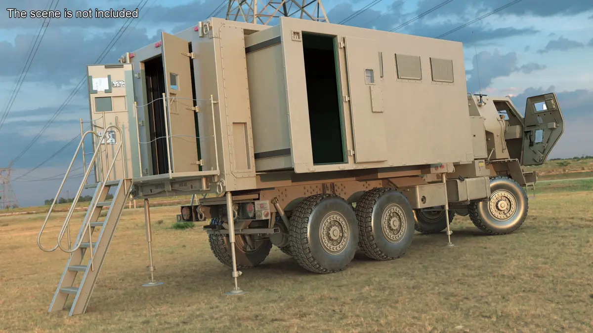 Deployed Military Mobile Command Truck is a 3d model of a heavy military transport vehicle, designed for logistics, tactical operations, and support in diverse terrains.