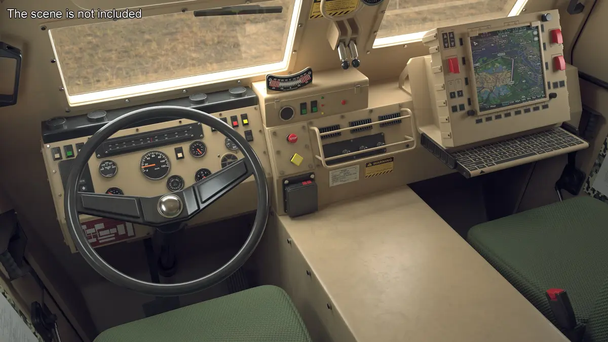 This model showcases a robust and armored exterior, equipped with a multi-wheel drive system for enhanced mobility and stability. The vehicle features a spacious cargo area, protective plating, and advanced suspension systems, making it suitable for challenging environments. Its design emphasizes versatility and durability for various missions.