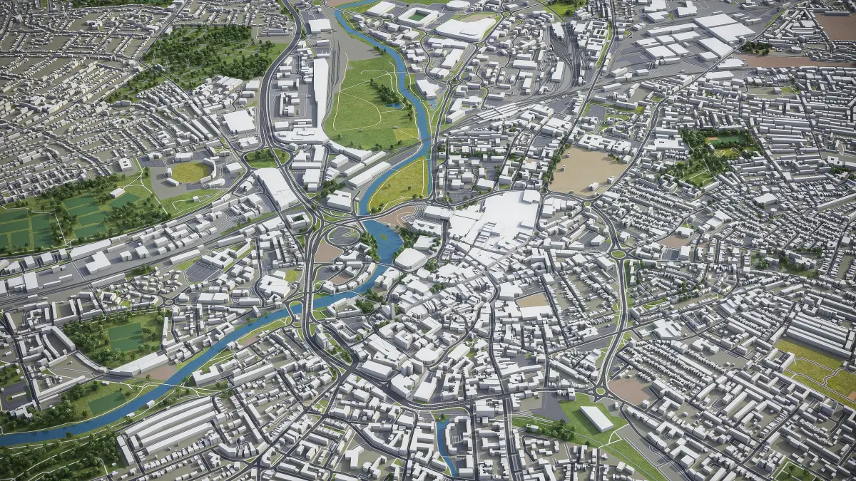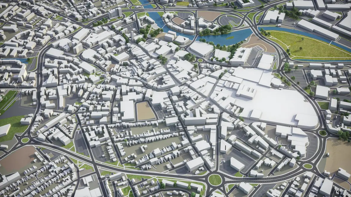 - Full city extents up to 100 x 100 km — or crop to an area of interest for better format compability and scene performance