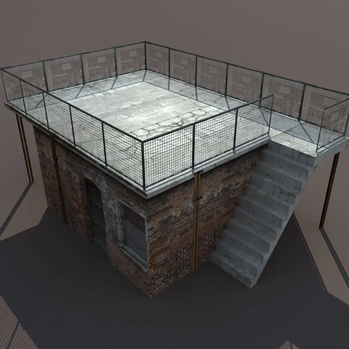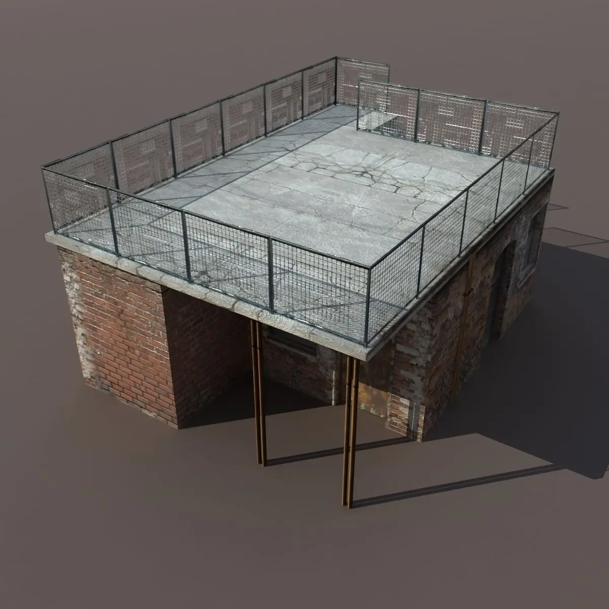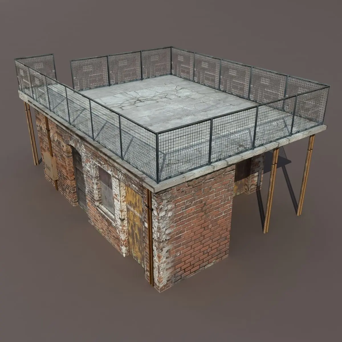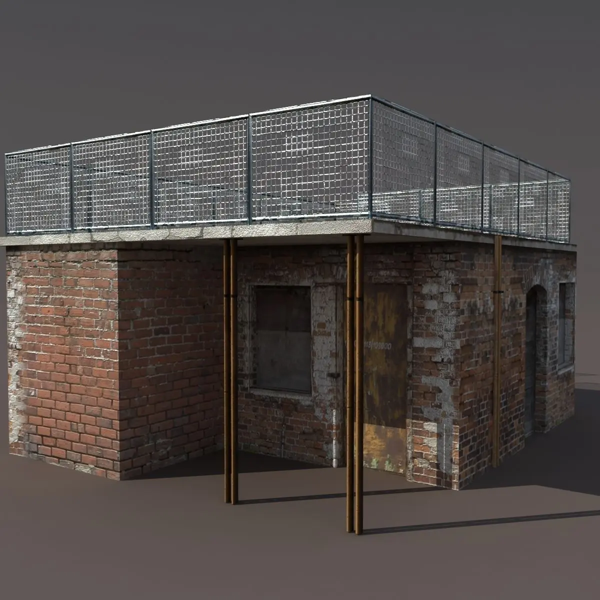 A 3D model of a low poly derelict building. Exterior only, no interior.