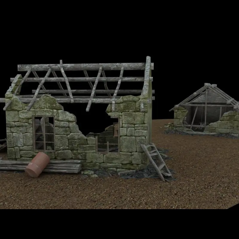 A set of two abandoned buildings... nothing left but ruins.