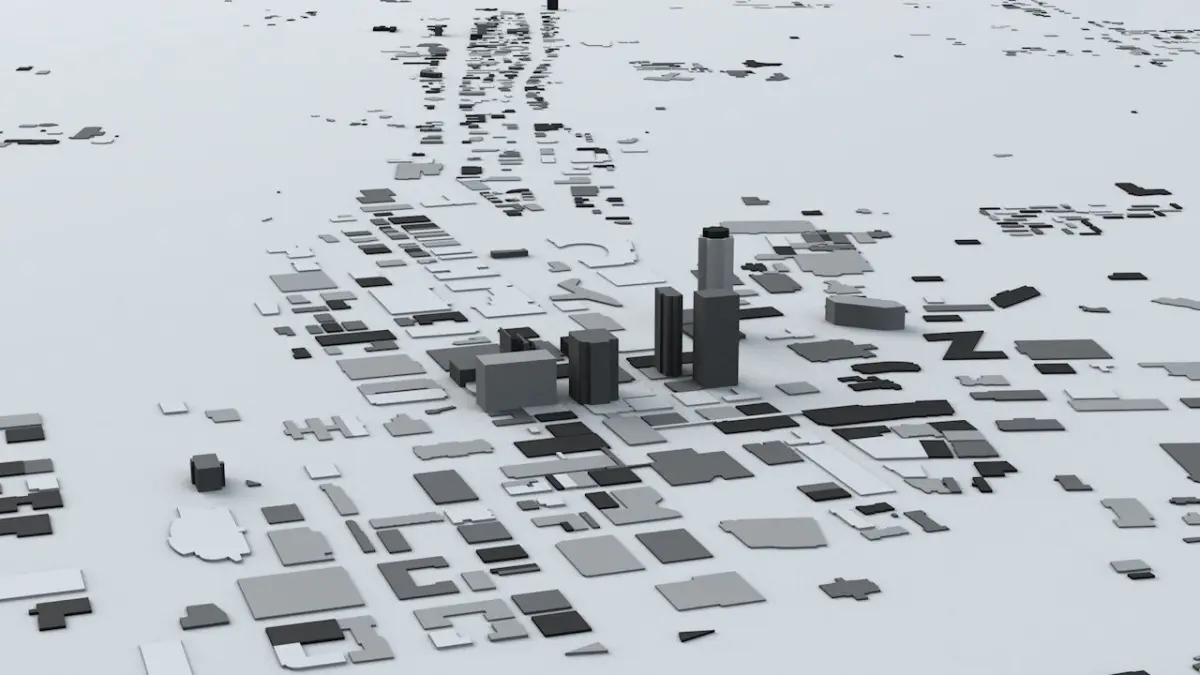 - this model is based on real data therefore this is a realistic buildings and streets setup of Des Moines, USA- 4 building groups are setup so that you can add variety to buildings (color materials and/or textures) Groups can be turned off/on- UV mapped with overlapping UVs- the model is positioned on a flat surface (all buildings are on the “floor” - no elevation data included)- geometry is polygonal quads and tris- model is untextured and renders fast