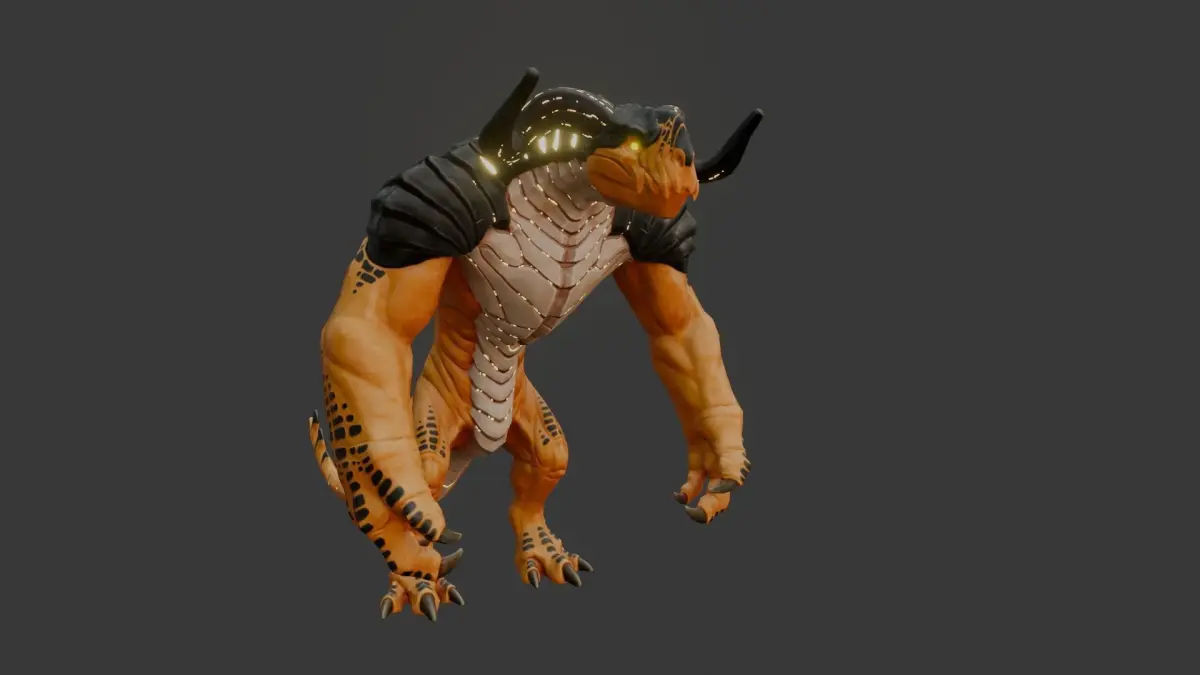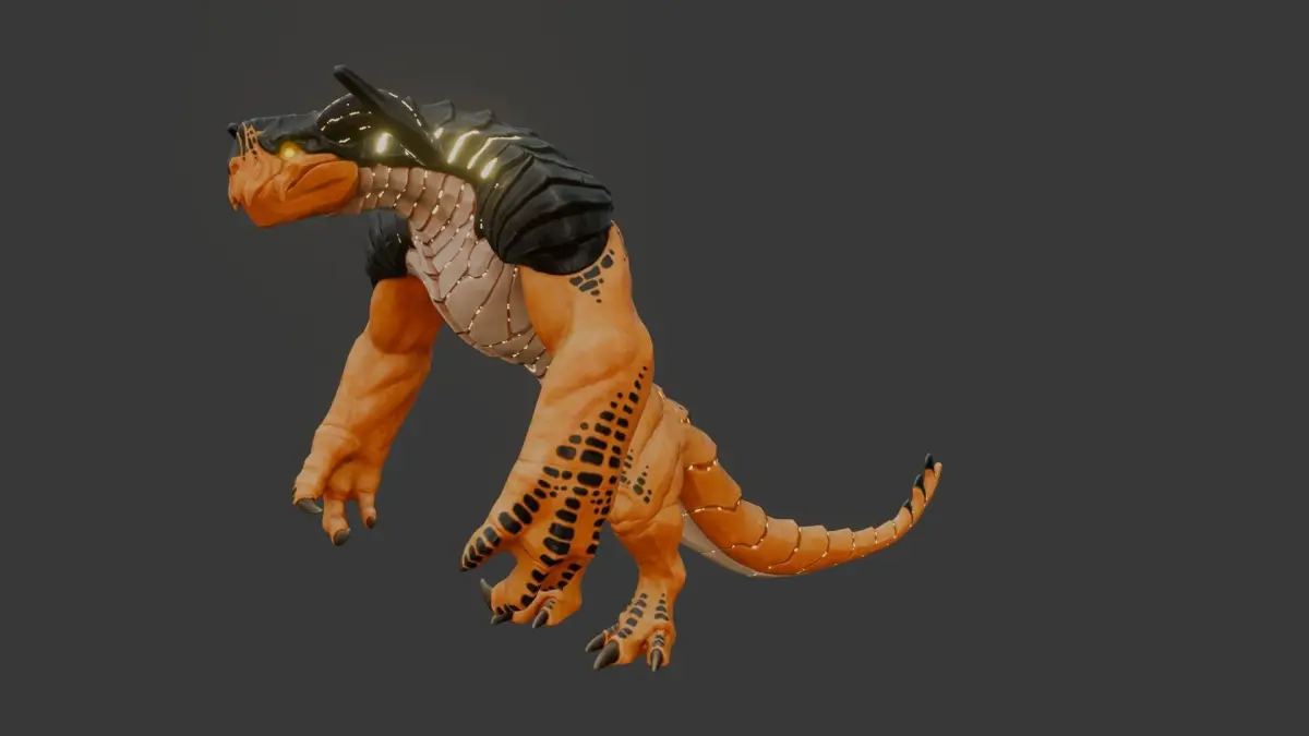 A master of desert camouflage, the Desert Baronto blends with sun-baked dunes thanks to its sandy hide. This agile predator, built like its shadowy kin with wicked horns and a powerful tail, utilizes the desert itself as a weapon. Whispers claim it can manipulate sandstorms, burrow with unearthly speed, or even command the scorching desert heat.
