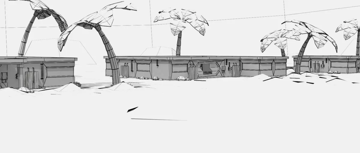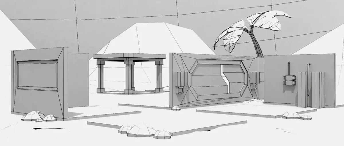 A modular kit for a sci-fi desert base with a total polycount of 2264 polygons and 4516 triangles.