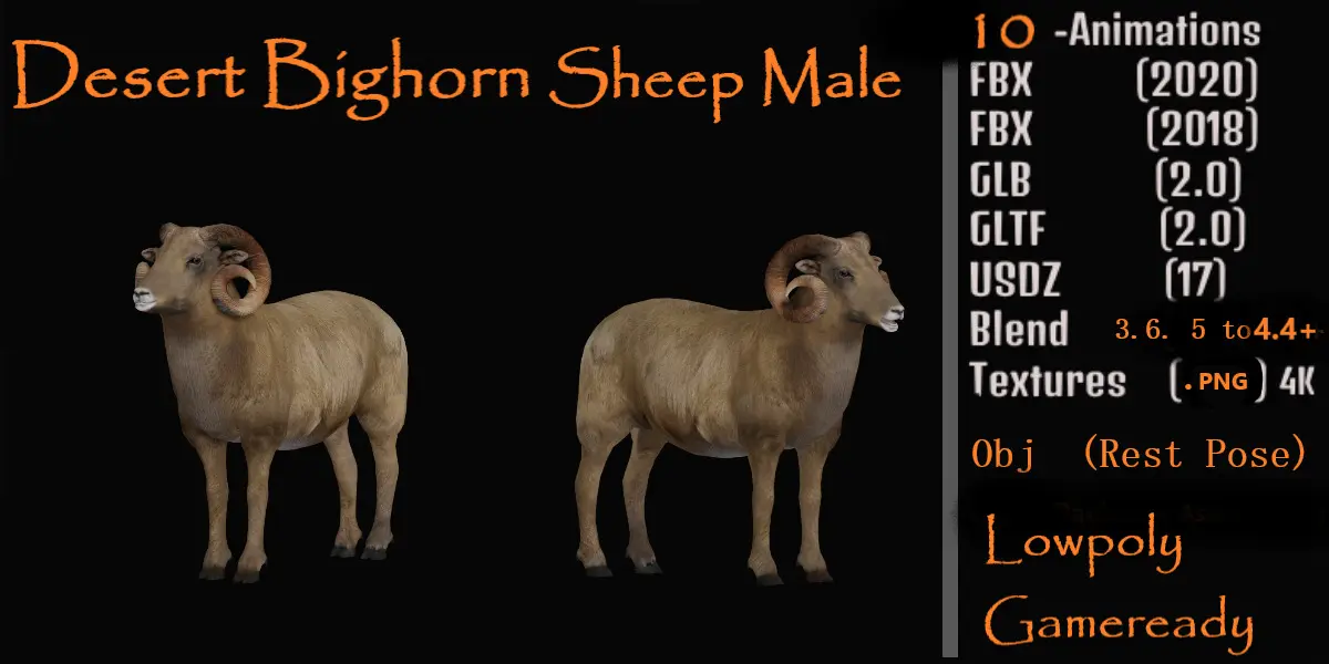 The desert bighorn sheep is a subspecies of bighorn sheep that is native to the deserts of the United States' intermountain west and southwestern regions, as well as northwestern Mexico. The Bureau of Land Management considered the subspecies sensitive to extinction..3D desert bighorn sheep Male Animal Model By Nyilonelycompany (nyc).