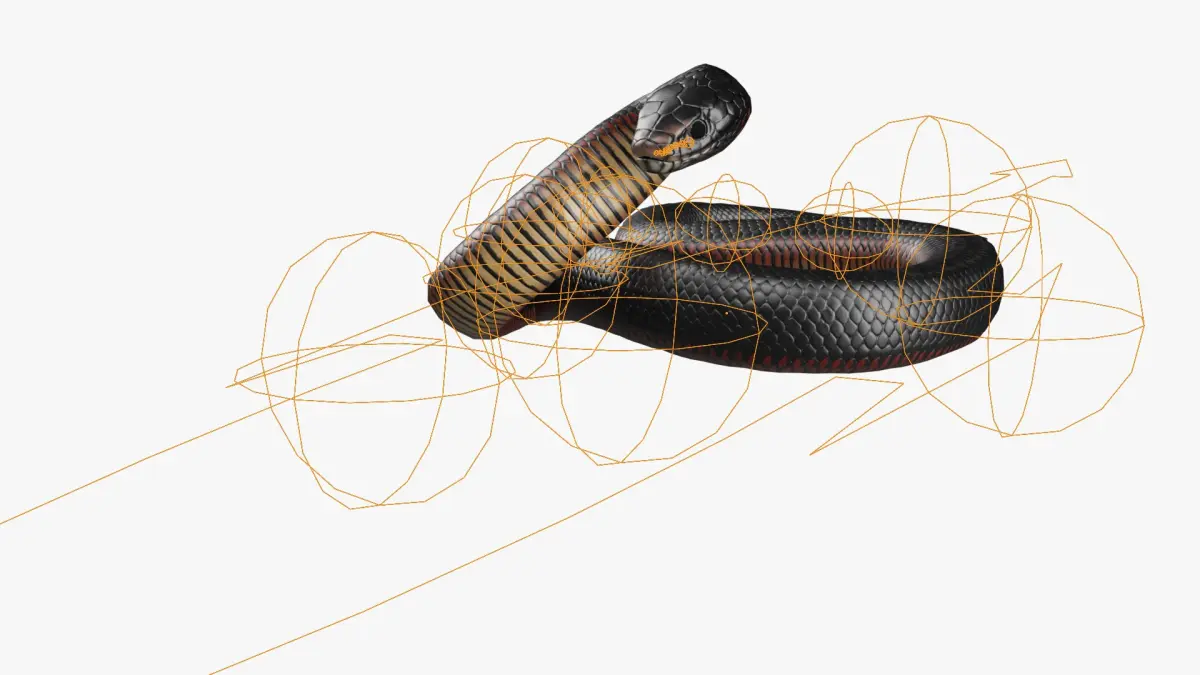 Desert Black King Snake Attacks Animated Rigged For Blender is fully rigged and is ready to be animated in Blender. You can easily position it the way you need or animate it the way your project requires. See the screenshots to get an idea of how rigging works. The pose of the model on the render images is an example and can be recreated using rig, it is not initially included into the product.