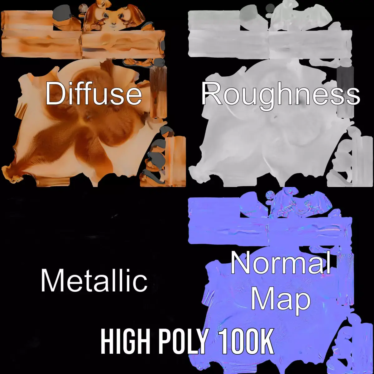 This realistic Desert Camel Fur model pack captures the essence of these majestic creatures, featuring detailed fur textures and lifelike anatomy. Ideal for desert scenes, educational content, or fantasy settings, this model provides an immersive experience with its high-quality rendering. Each model has 3 levels of detail: low-poly (1000 triangles for mobile), middle-poly (10,000 triangles for environment), and high-poly (100,000 triangles), which allows for use in production rendering (such as 3ds Max, Maya, Cinema 4D, Blender, Vray/Corona/Cycles, and all others), game engines (Unity and Unreal compatible), and interactive presentations, providing a choice of detail based on the LOD system principle. The model's textures are PBR, Diffuse, NormalMap, and reflection/roughness/metallic, suitable for any modern rendering engine. All models accurately unwrapped and have no overlapping UVs. All textures are 4096*4096 in size. If you like this model, please like and leave a comment!