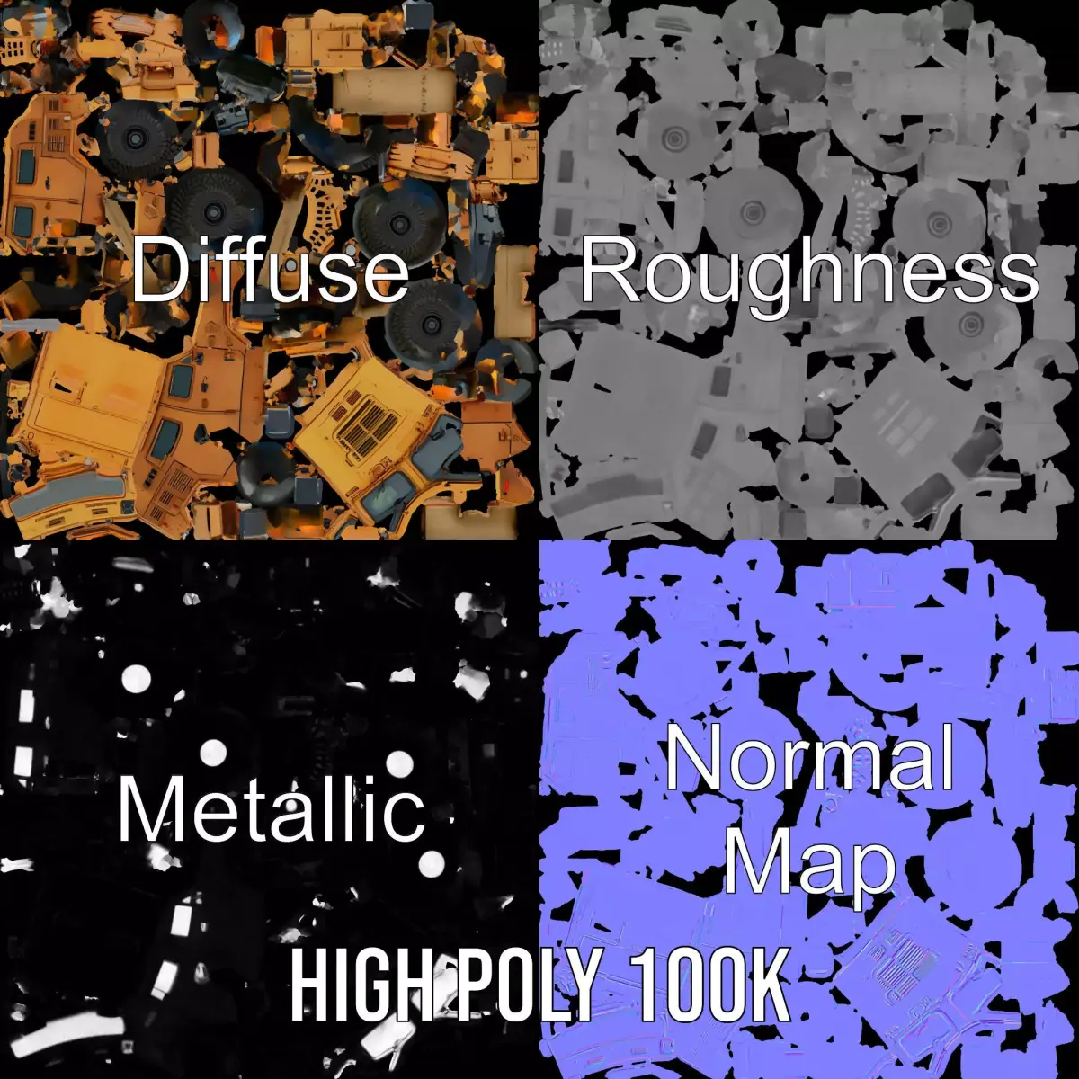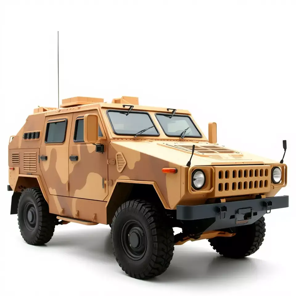 This Desert Camo Armored SUV model pack is designed for realistic military and tactical scenarios. Featuring a rugged, camouflage exterior, this SUV is perfect for both desert and urban settings. Each model has 3 levels of detail: low-poly (1000 triangles for mobile), middle-poly (10,000 triangles for environment), and high-poly (100,000 triangles), which allows for the use of this model in production rendering (such as 3ds max, Maya, Cinema4D, Blender, Vray/Corona/Cycles, and all other), game engines (Unity and Unreal compatible), and interactive presentations, providing a choice of detail based on the LOD System principle. The model's textures are PBR, Diffuse, NormalMap, and reflection/roughness/metallic, which are suitable for any modern rendering engine. All models accurately unwrapped and have no overlapping UV. Textures are 4096*4096 in size. Perfect for use in game environments, film production, or tactical simulations. Please like and leave a comment if you enjoyed the model.