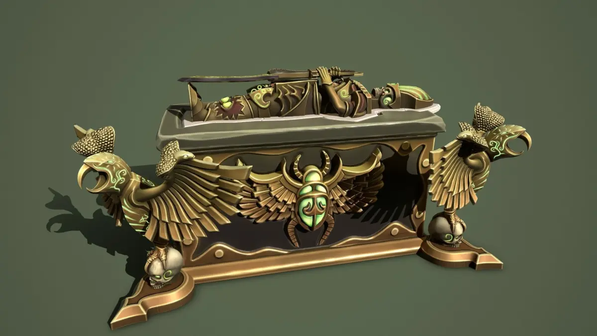 model consists of 7 materials - 1.Desert chest, 2.Pharaoh-statue, 3.Sarcophagus, 4.Pharaoh-Sword, 5. Scarab bas-relief, 6. Camel bas-relief, 7. Eagle-statue