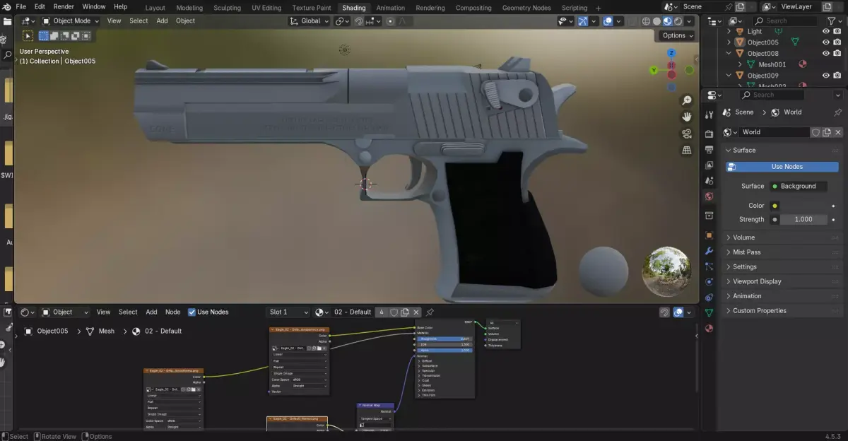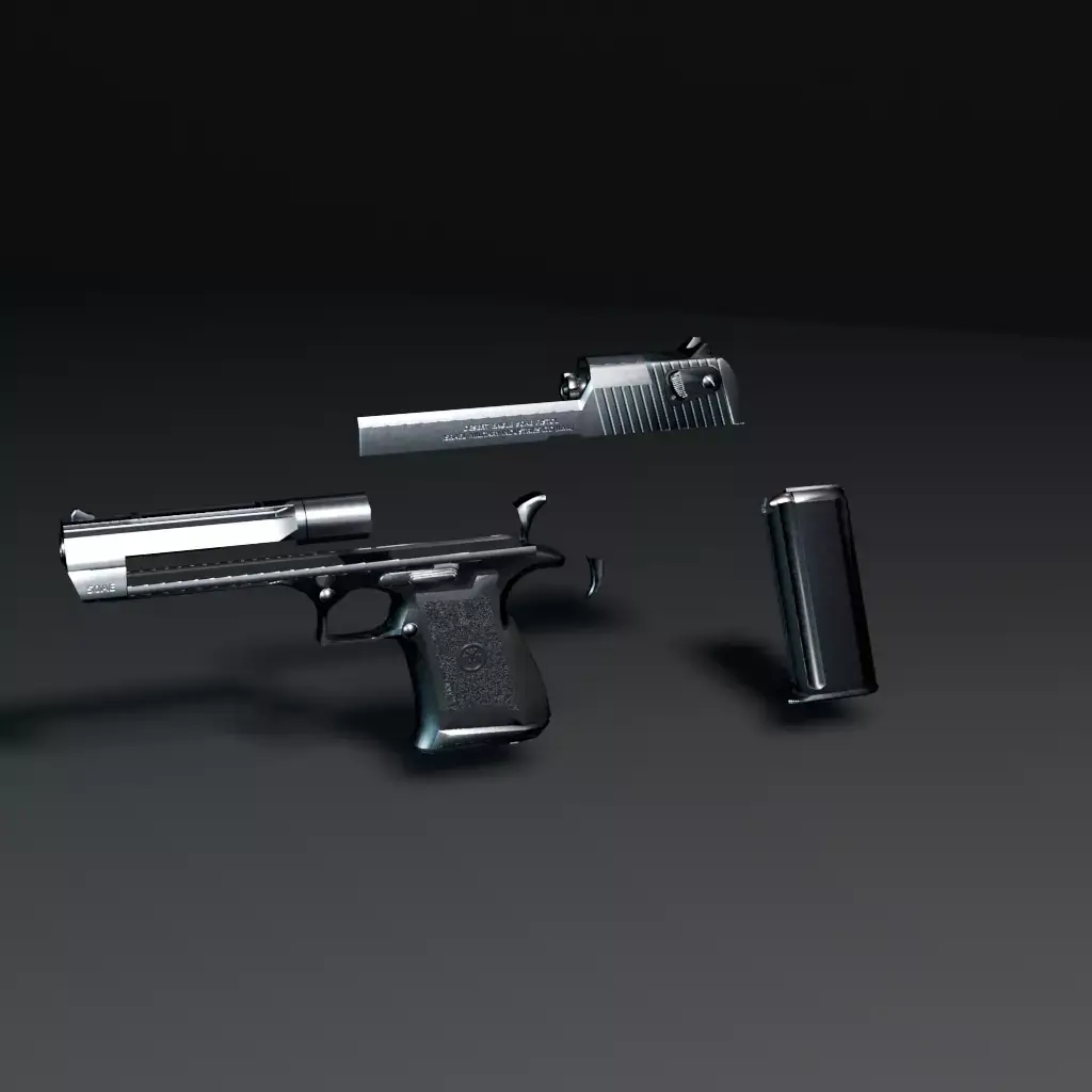 This realistic 3D model of a Desert Eagle handgun is designed for professional visualization, animation, and game development. The model captures every detail of the iconic firearm, featuring accurate proportions, clean topology, and high-resolution PBR textures for metal and polymer materials.