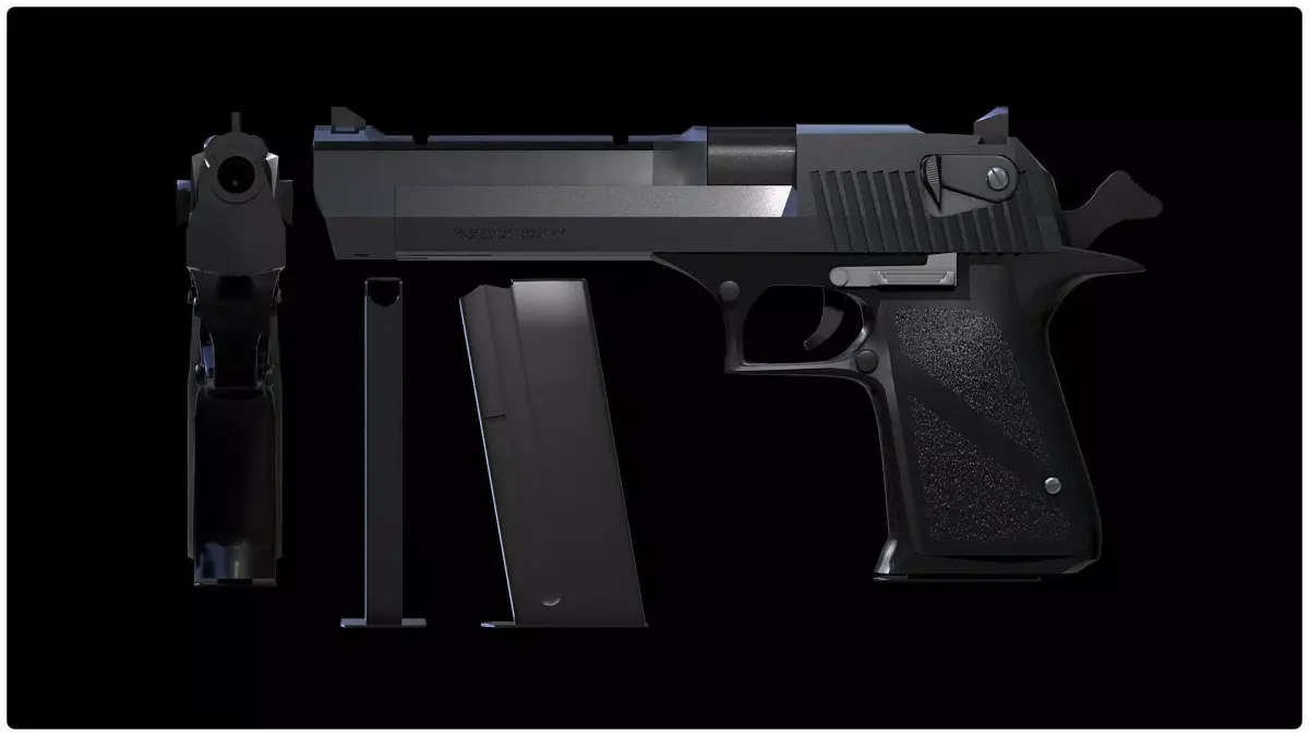 Realistic 3D model of the Desert Eagle .50 in black. Animated firing animation. Multipe formats.