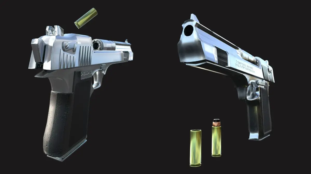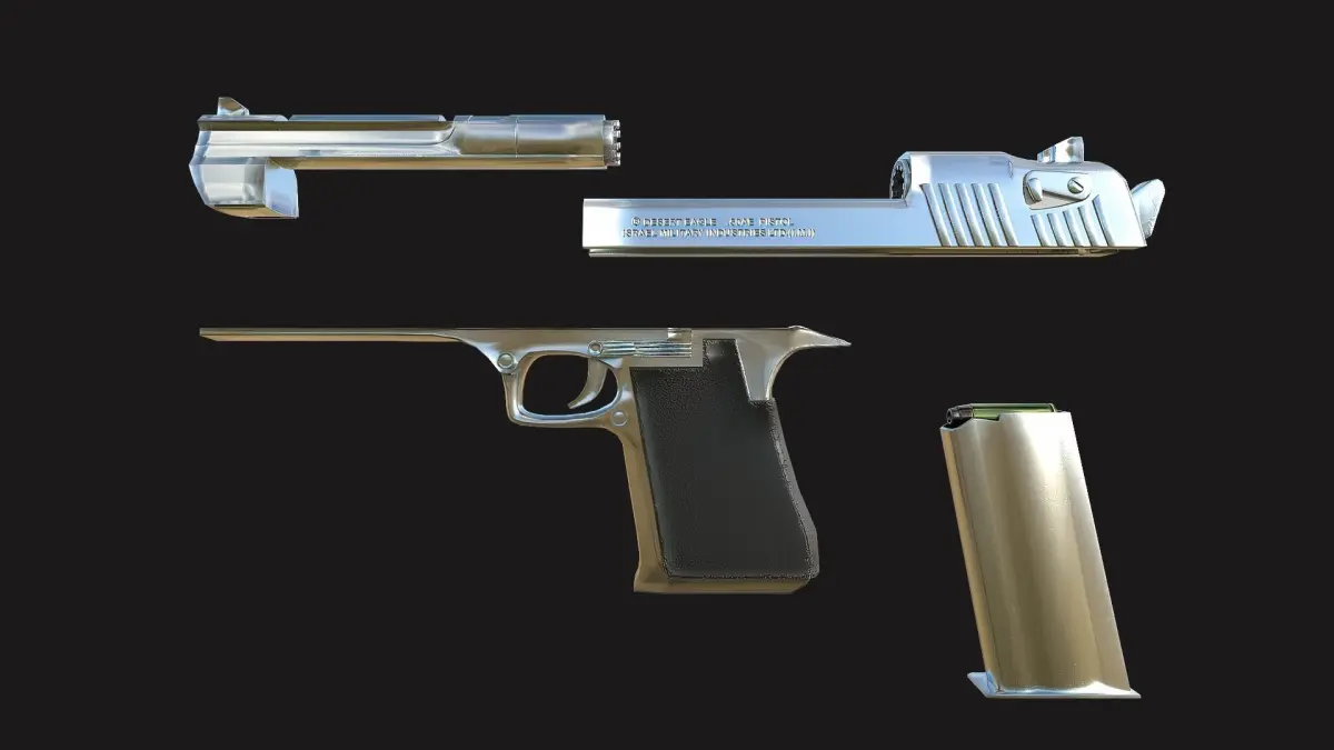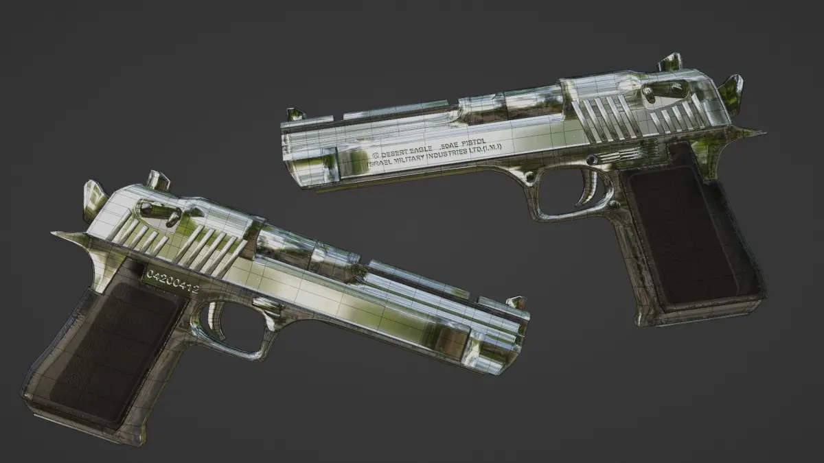 1 fbx file and 1 obj file containing a textured desert eagle model with an optimized topology for integration in the video game