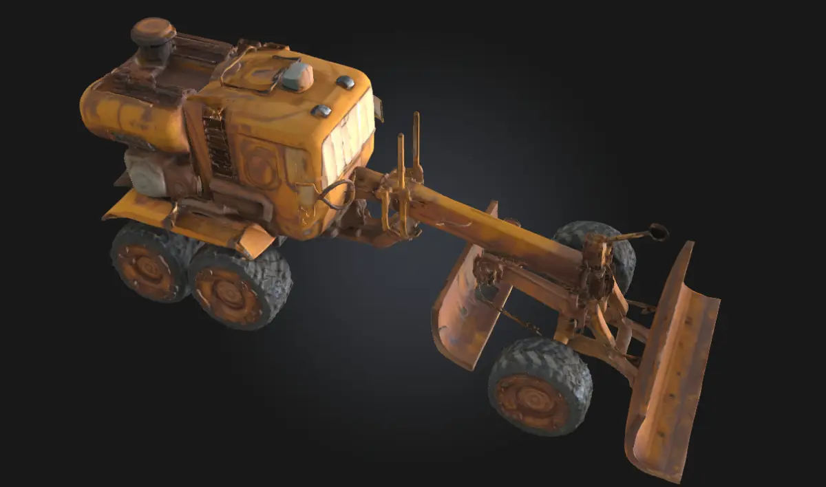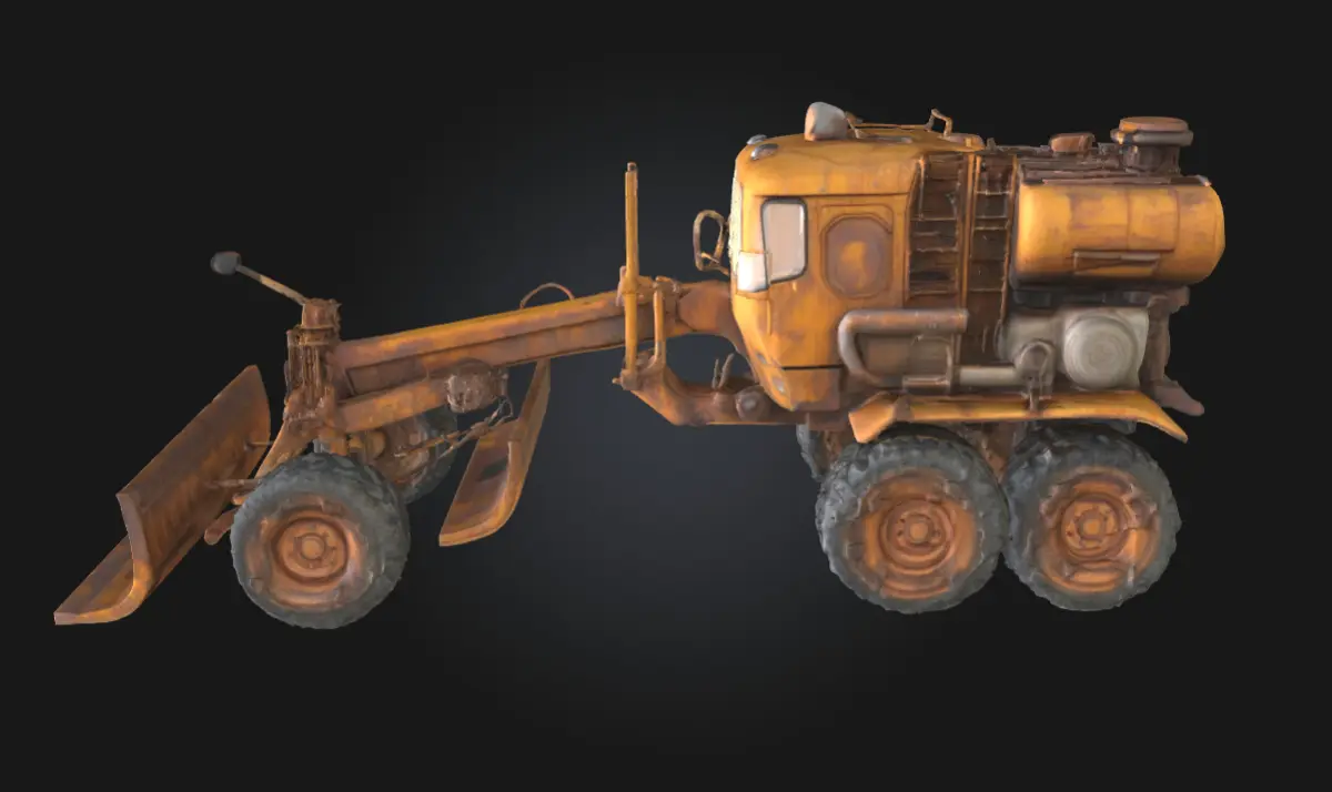 Desert Grader Explorer is a powerful 3D model of a weathered motor grader designed for rugged desert landscapes and off-grid operations. With its long blade, sun-bleached paint, and industrial toughness, this vehicle is perfect for construction zones, remote expeditions, or post-apocalyptic terrain leveling.